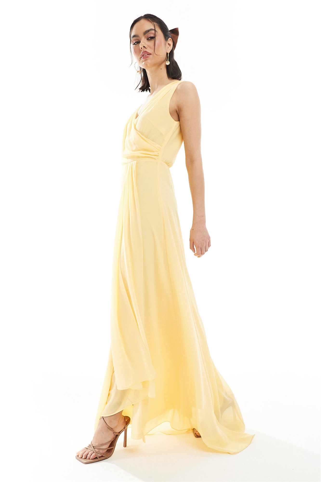 Макси-платье для подружки невесты из шифона с перекрещивающимся вырезом спереди и юбкой с перекрещивающимся кроем