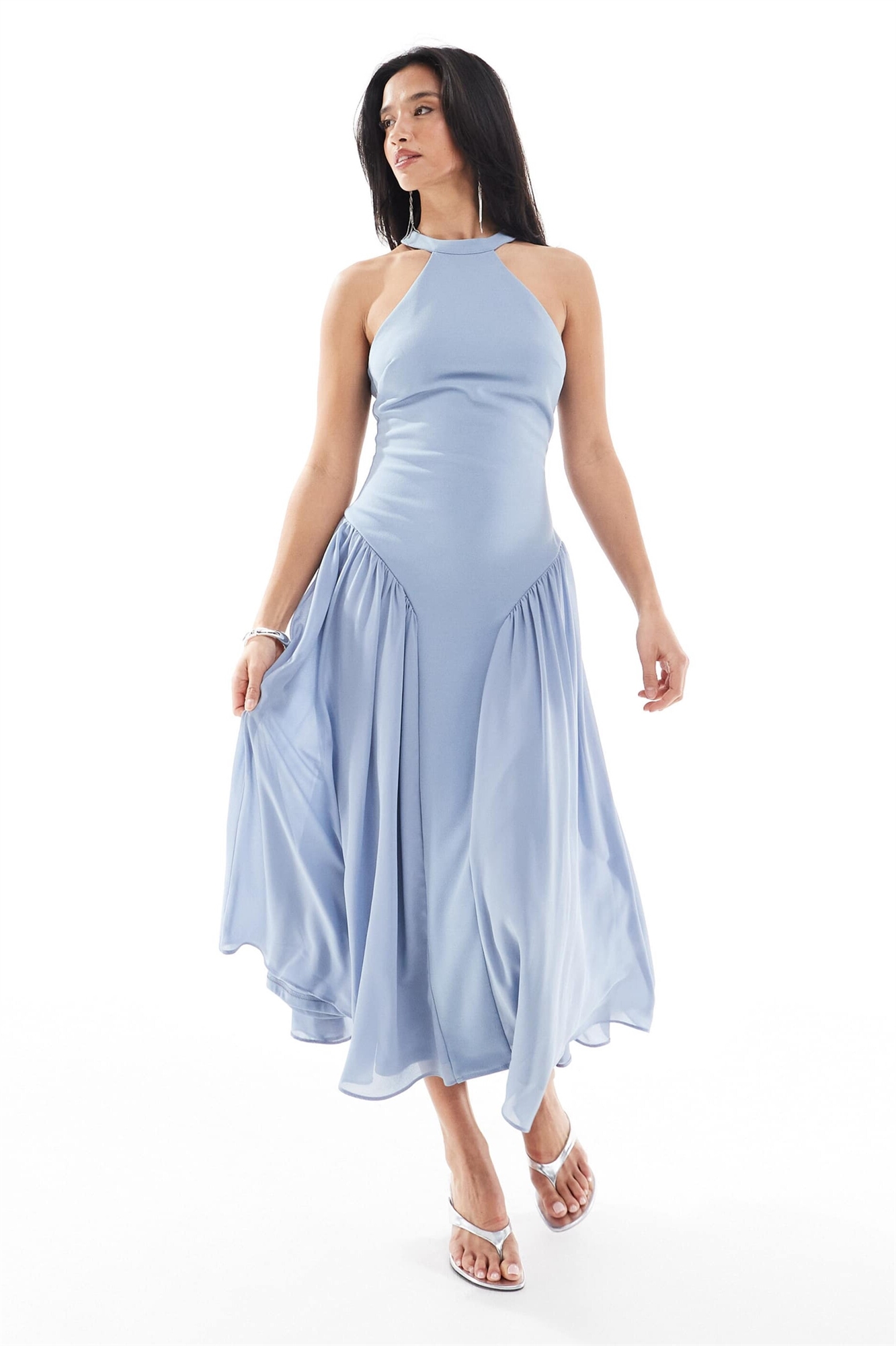 Макси-платье с высоким воротником и пышной юбкой для подружки невесты