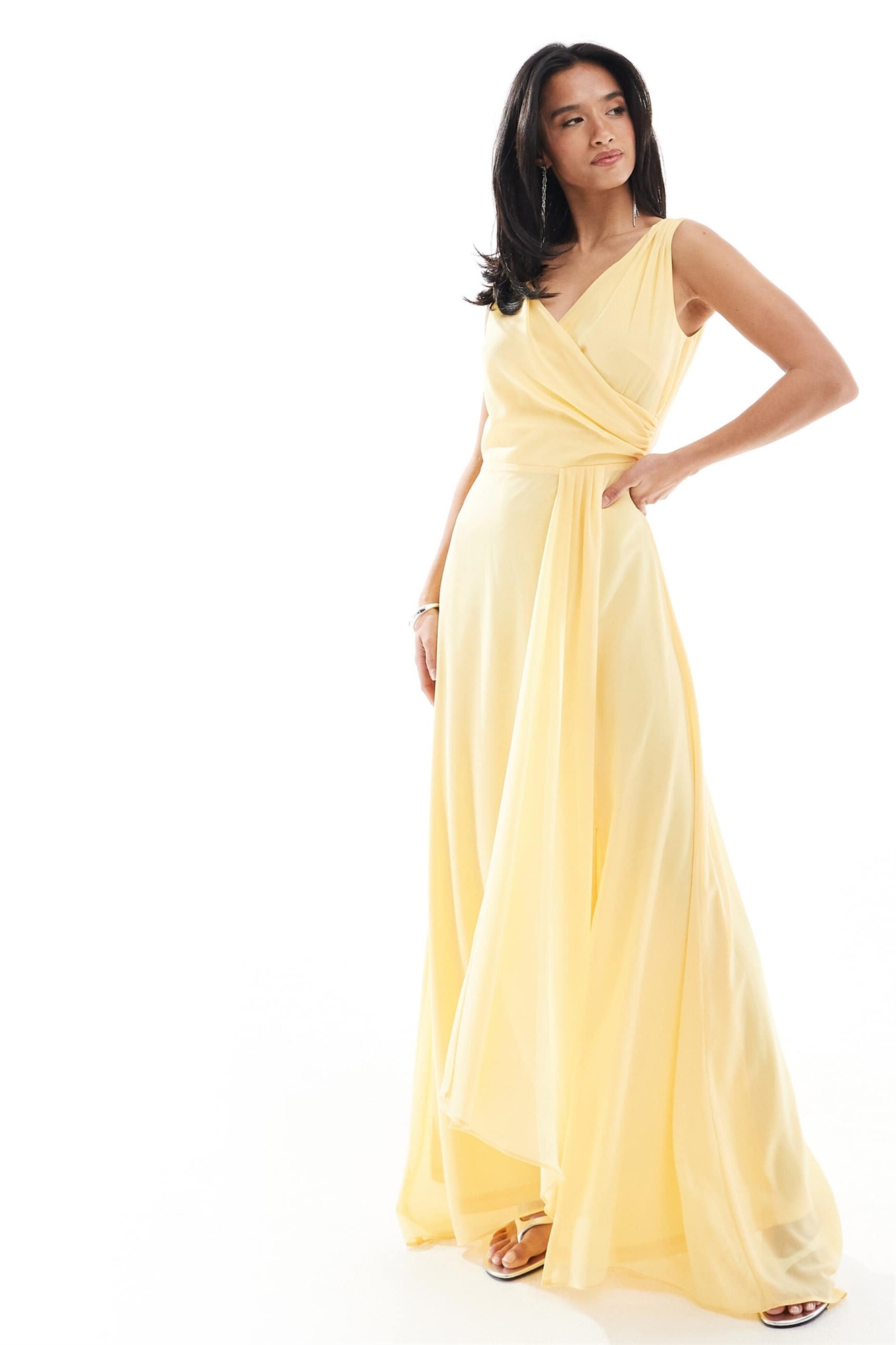 Макси-платье для подружки невесты из шифона с перекрещивающимся вырезом спереди и юбкой с перекрещивающимся кроем
