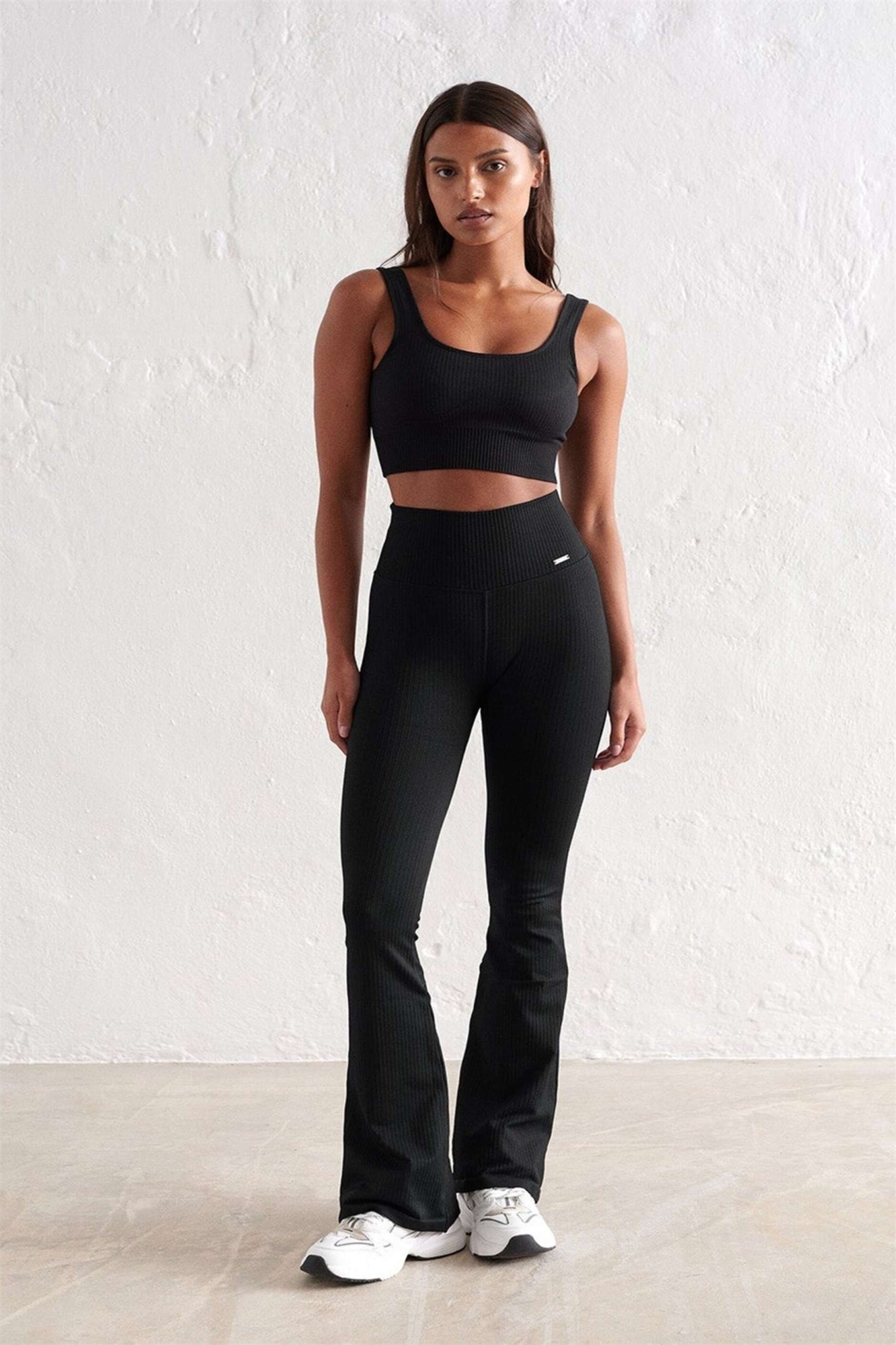 Черные ребристые бесшовные колготки-клёш для миниатюрных девушек