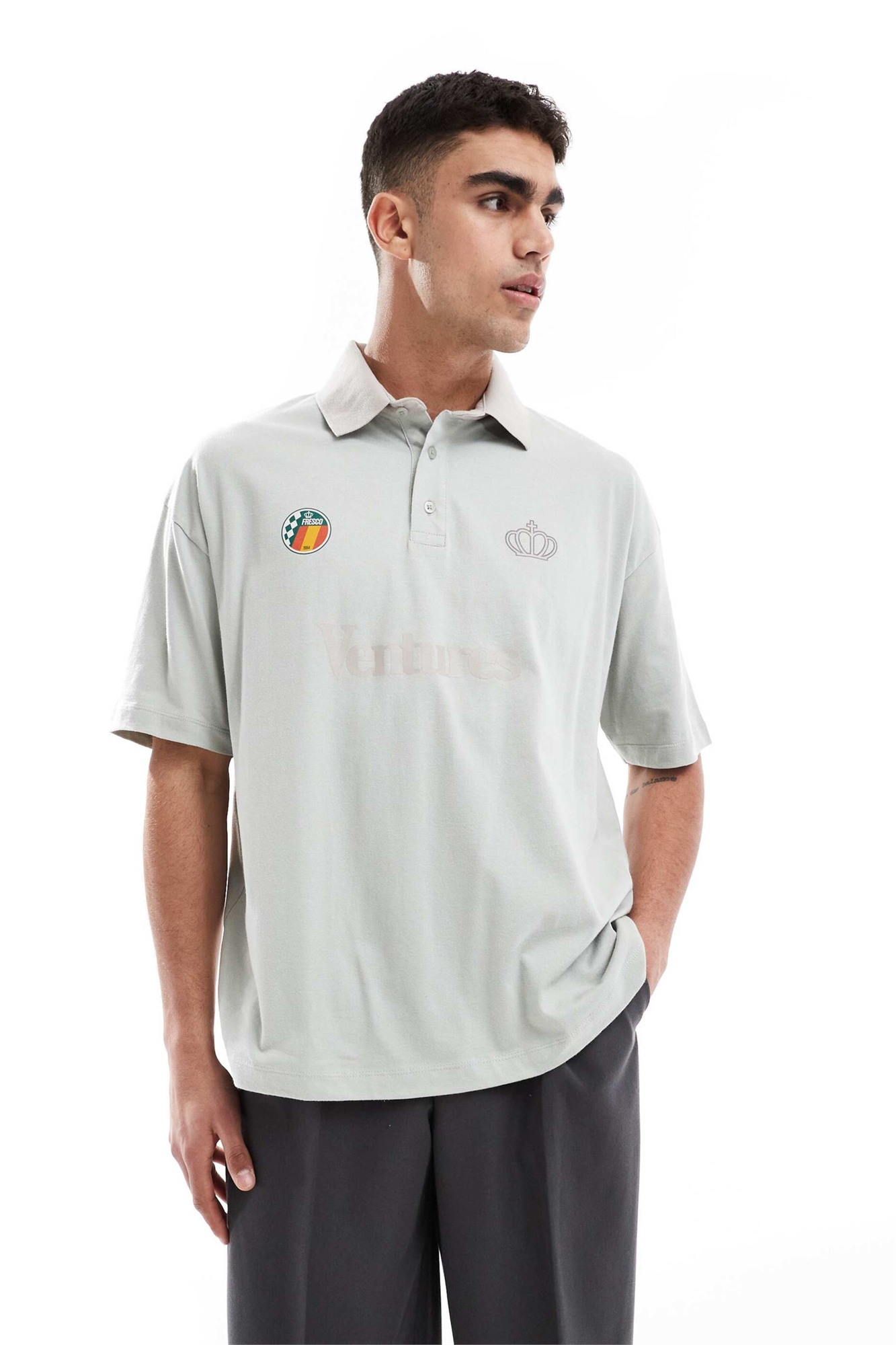 Поло свободного кроя с текстовым принтом
