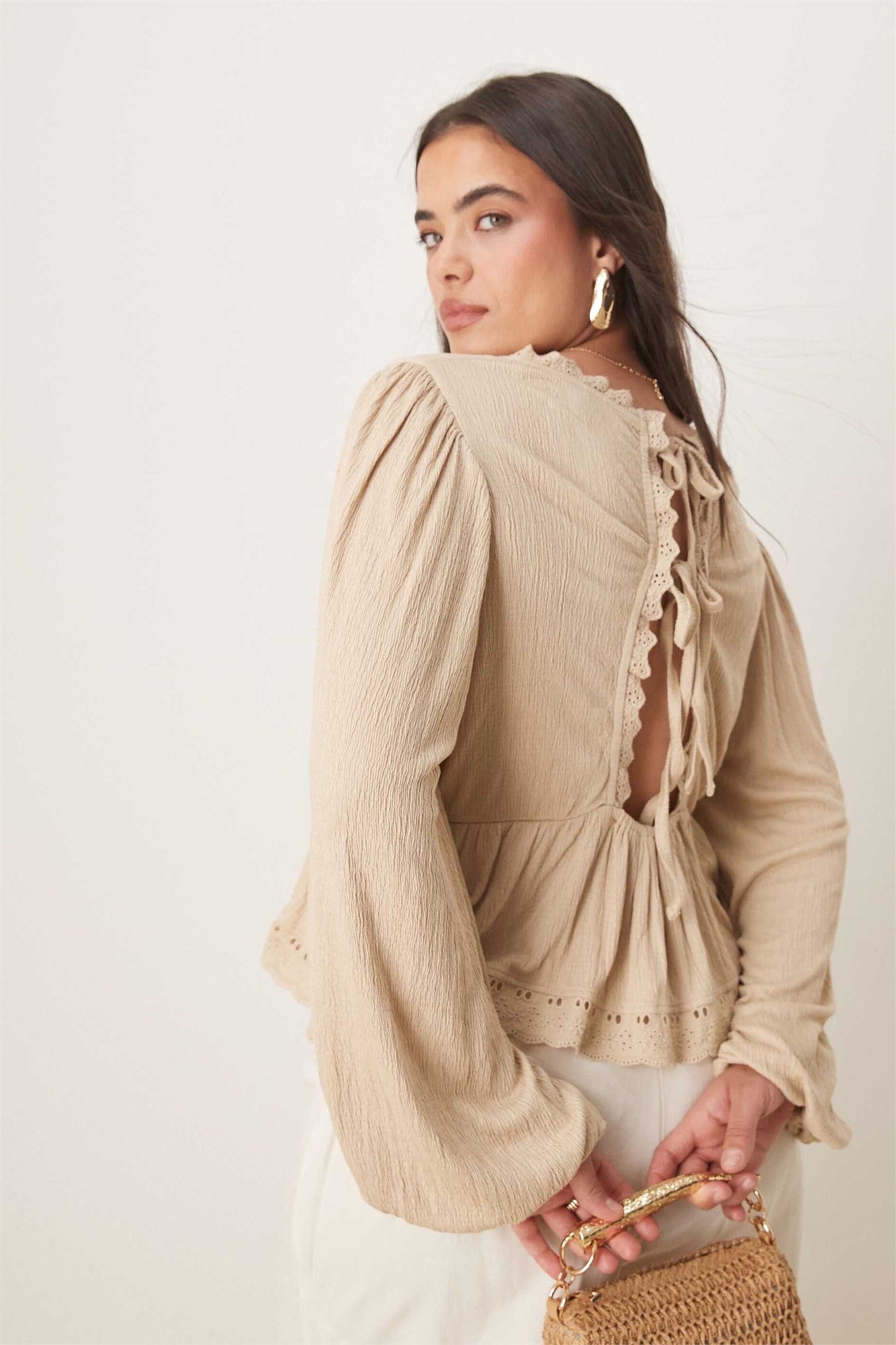 ASOS DESIGN Curve: топ с длинными рукавами, завязками на спине и вышитым подолом