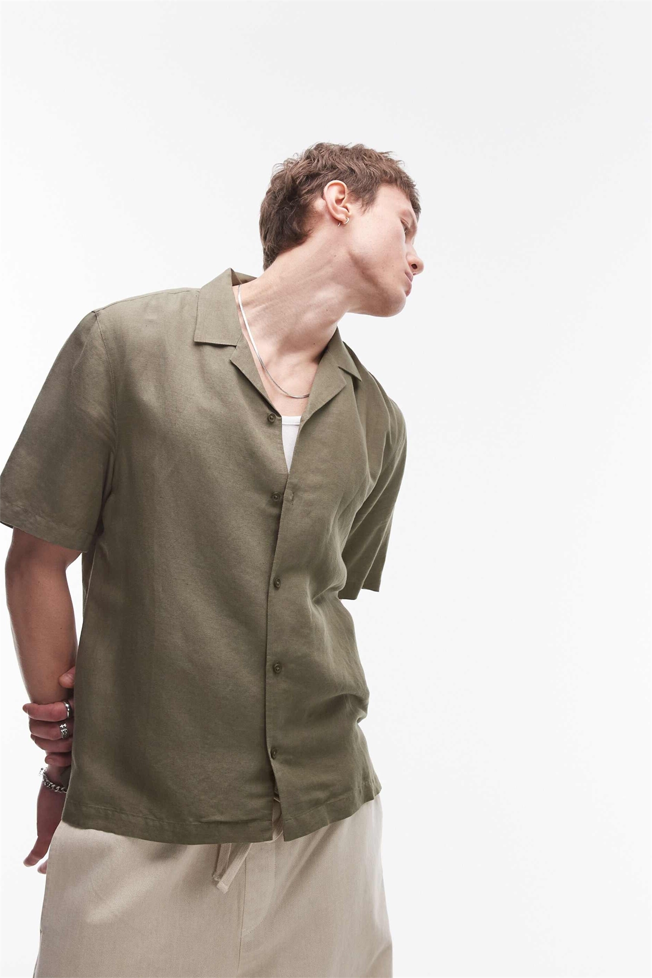 Рубашка с короткими рукавами из смешанного льна, классического кроя