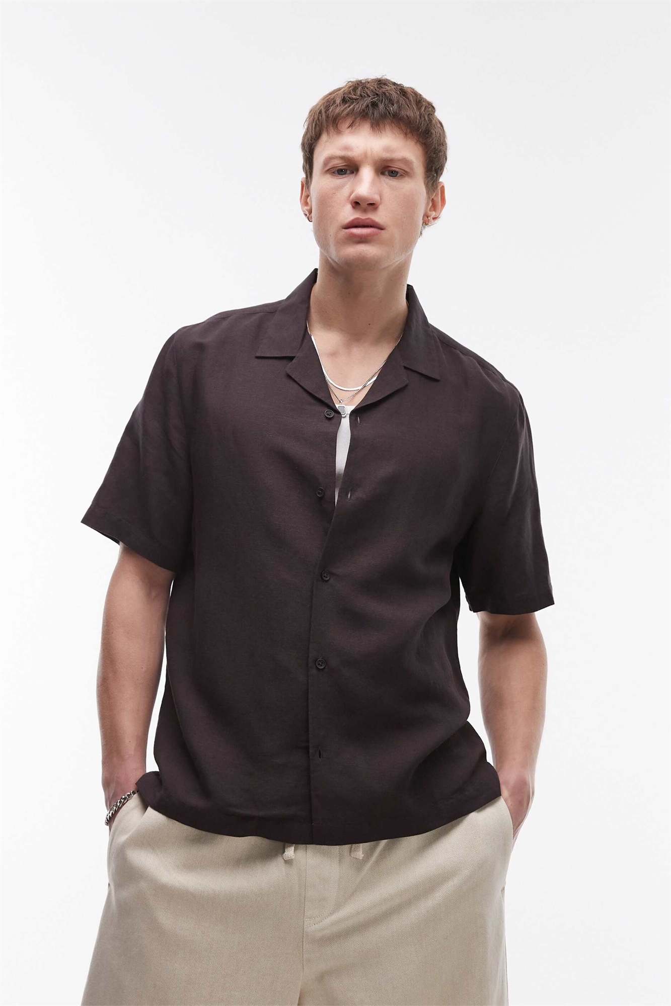 Рубашка с короткими рукавами из смешанного льна, классического кроя