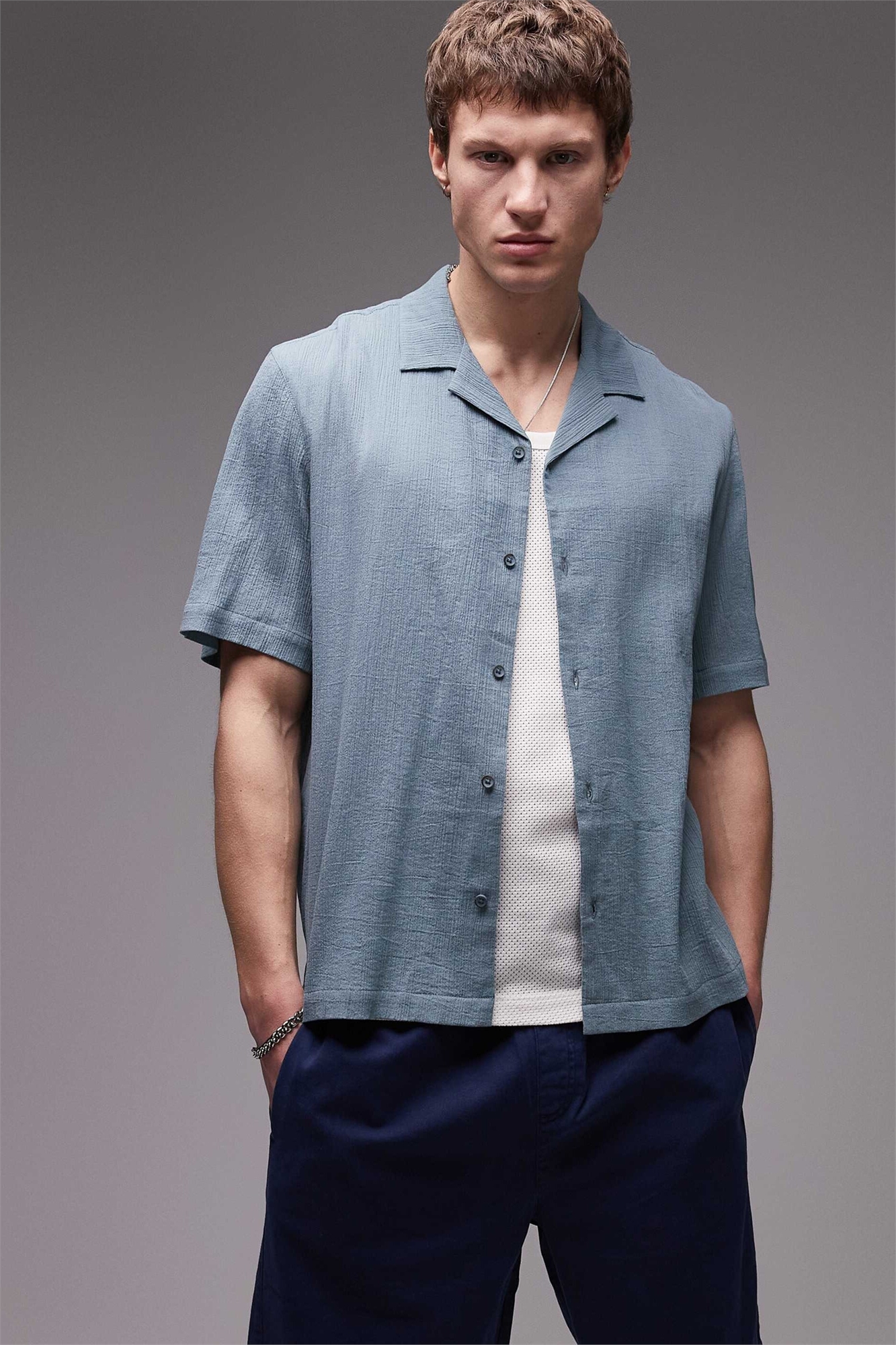 Рубашка с короткими рукавами из гофрированной ткани