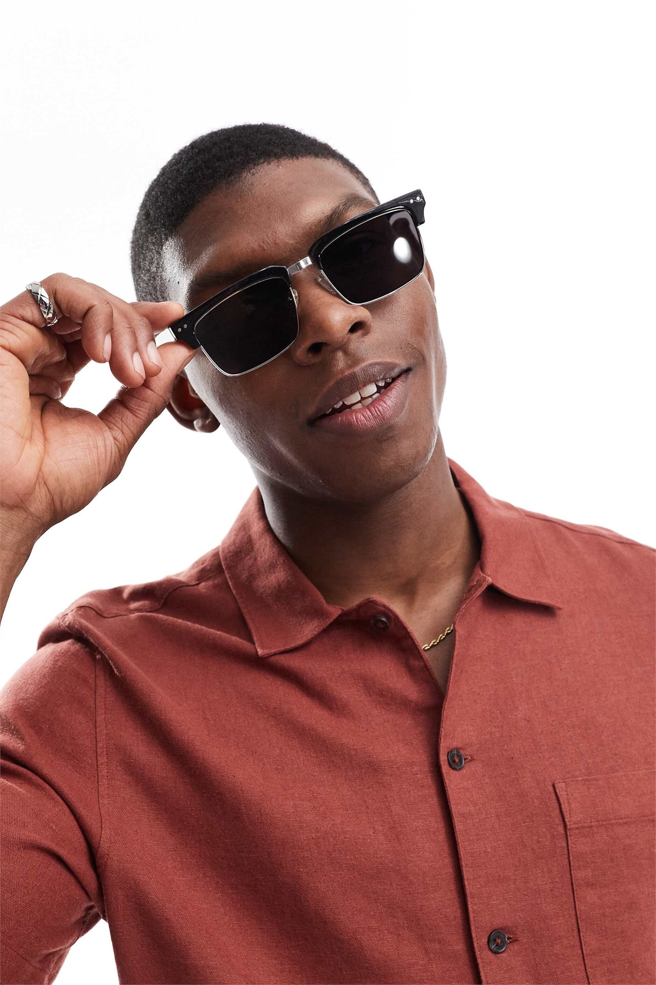 Ретро-солнцезащитные очки с линзами цвета «черный дым» и черно-серебристой оправой