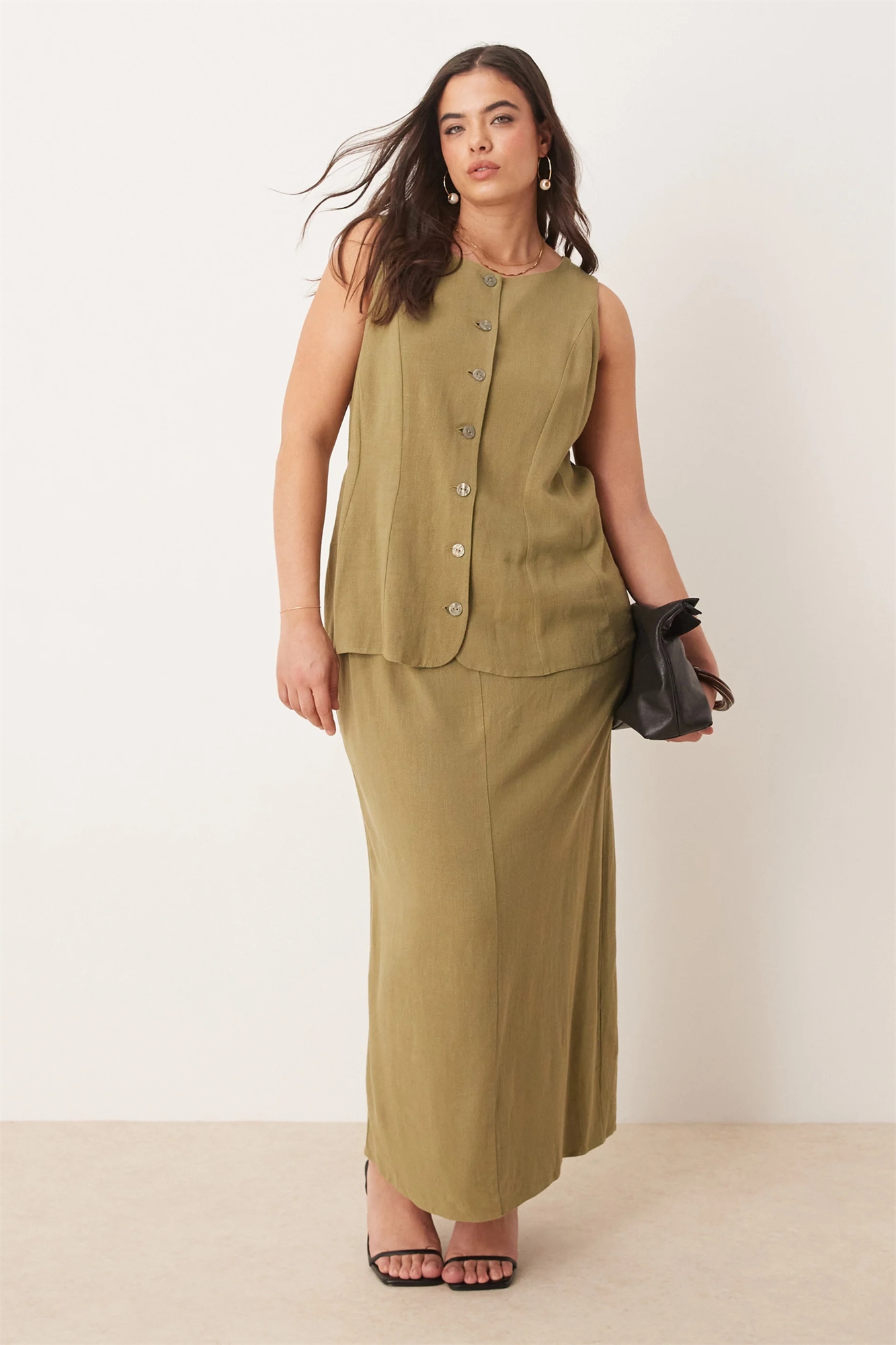 Платье средней длины с линяным жилетом от ASOS DESIGN Curve
