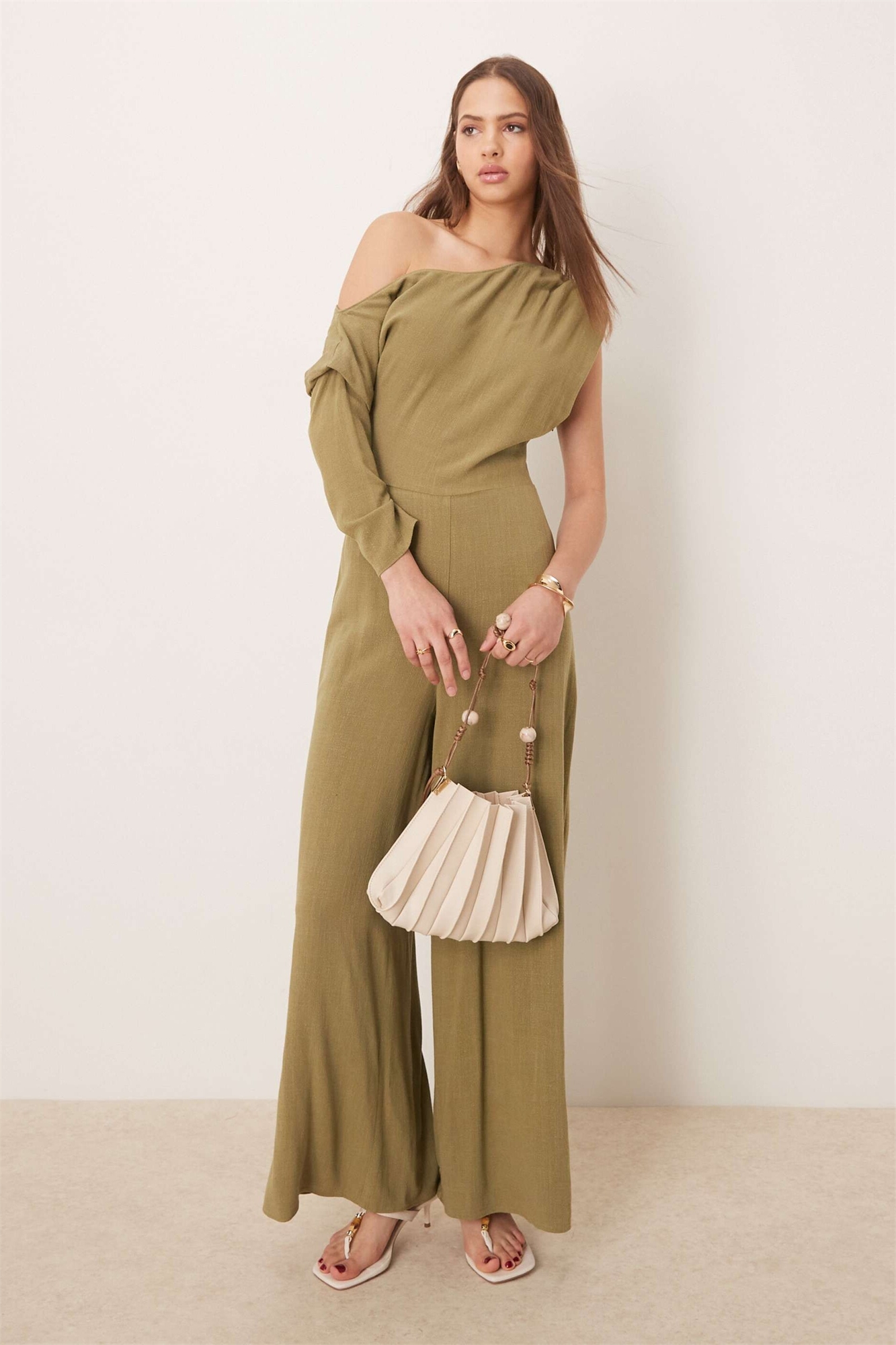 Комбинезон из льна с открытыми плечами