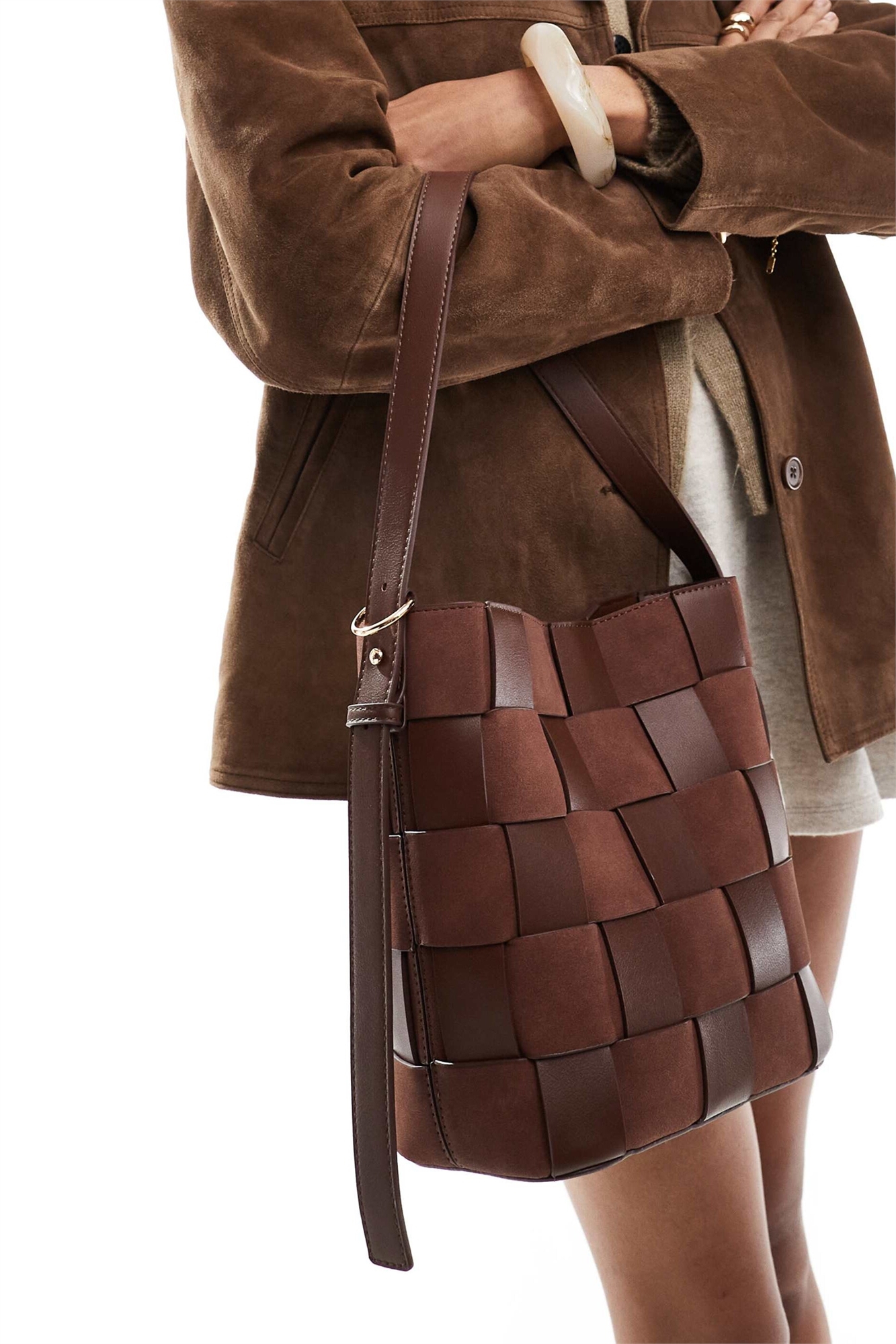 Сумка-бакет из искусственной замши и искусственной кожи с плетеным узором