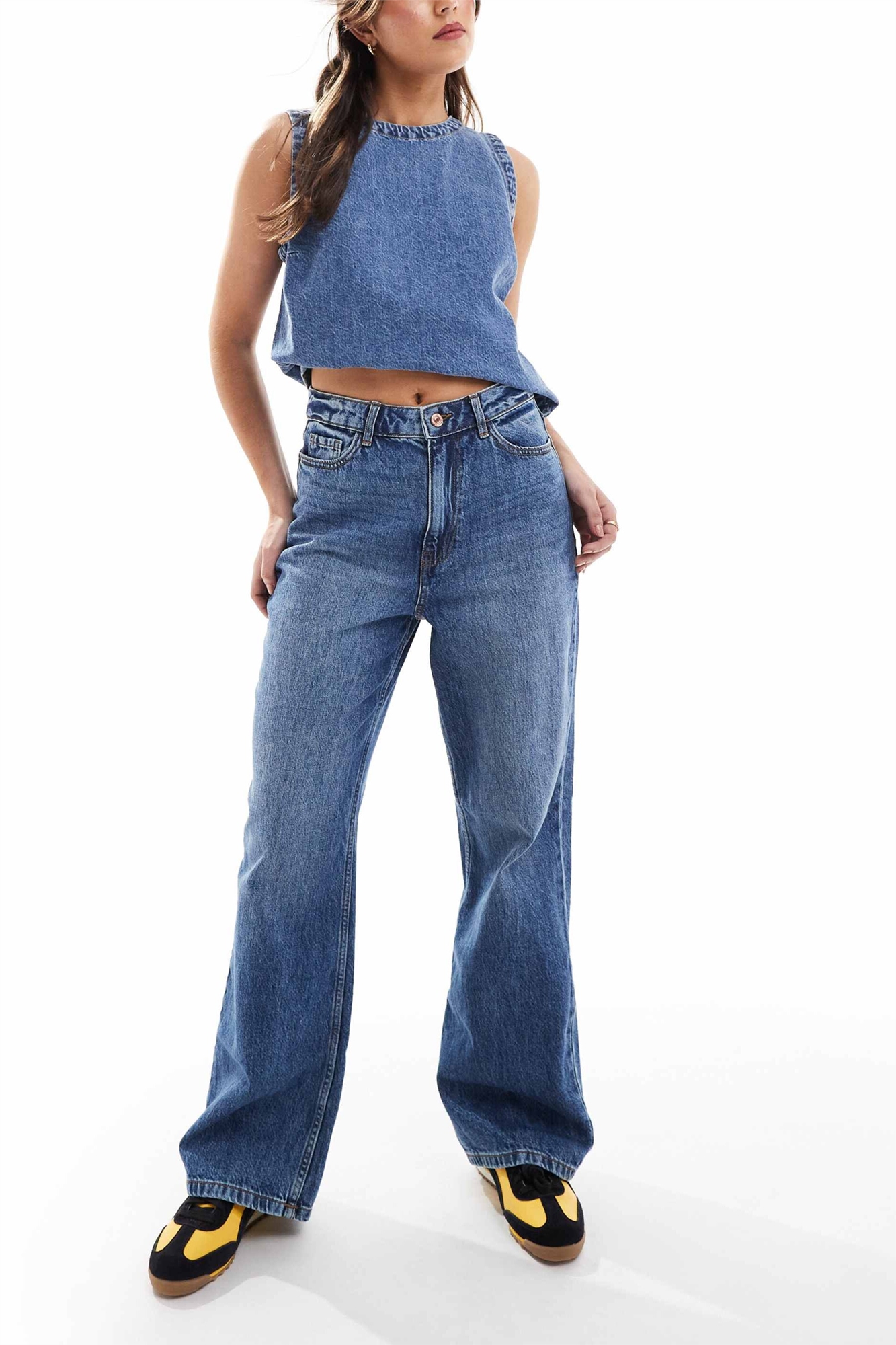 Неэластичный деним: средне-синий оттенок Верхняя часть 1: 100% хлопок.