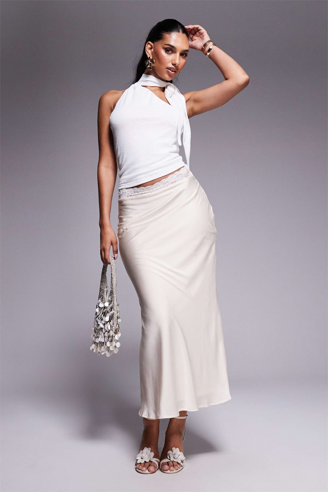 Макси-юбка с атласной оборкой на талии от Charmaine, кремового цвета