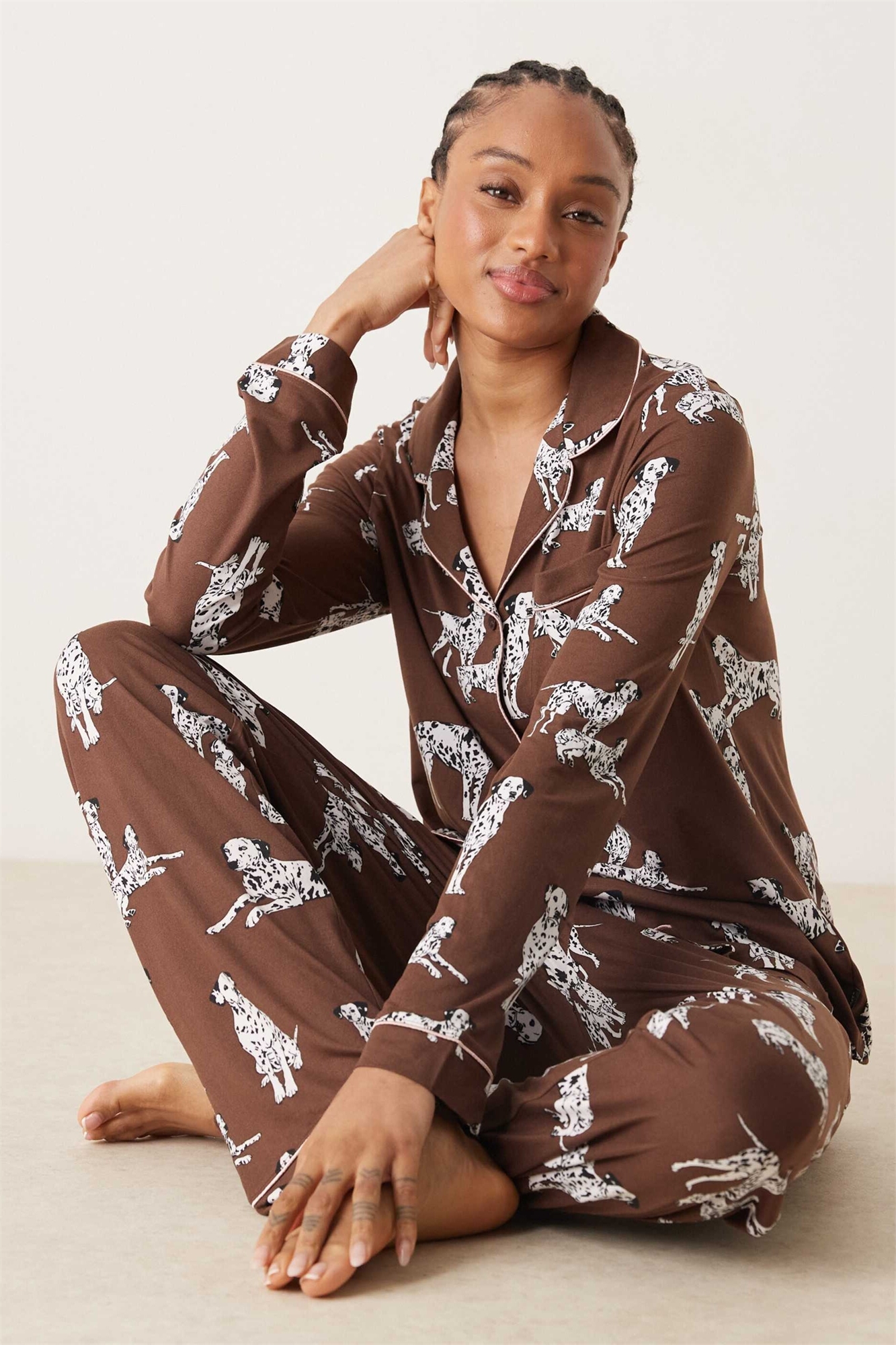 Эксклюзивный комплект пижамы с длинными рукавами и брюками от Chelsea Peers в стиле «ревер» с принтом «далматинец»
