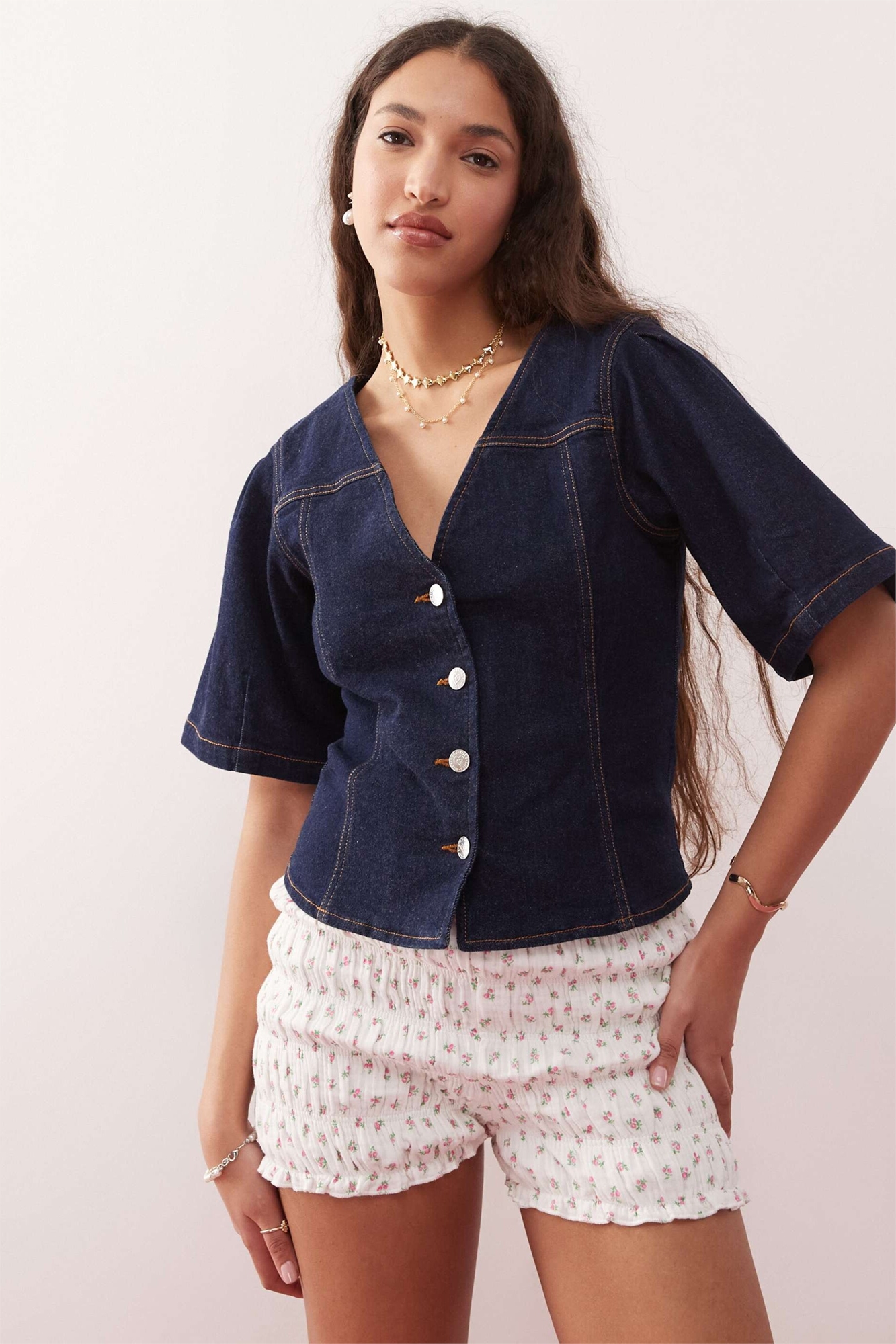 Неэластичный деним: индиговая стирка Основной материал: 99% хлопок, 1% эластан.