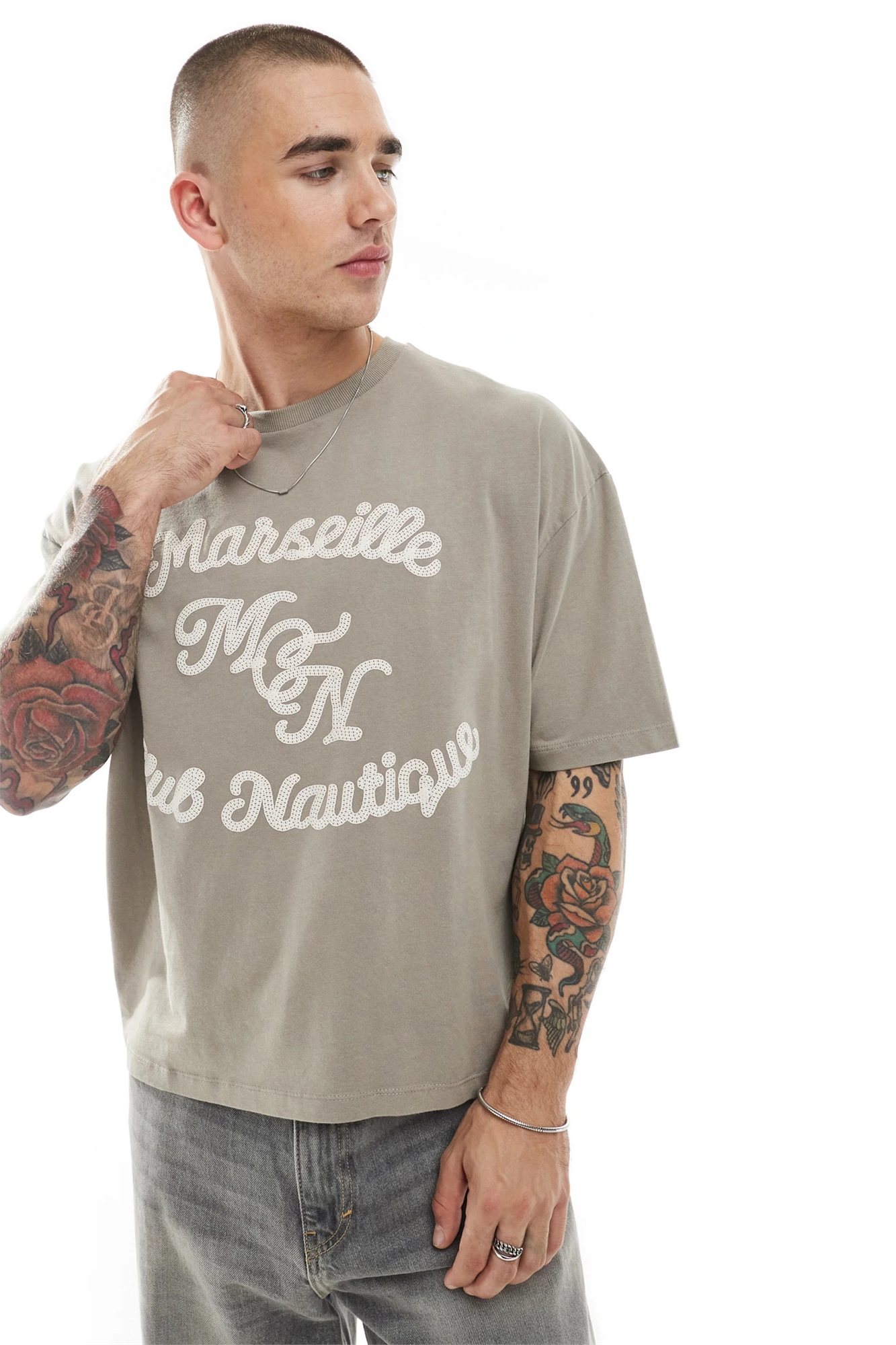 Объёмная футболка свободного кроя с надписью, выполненной в технике пуф-принта