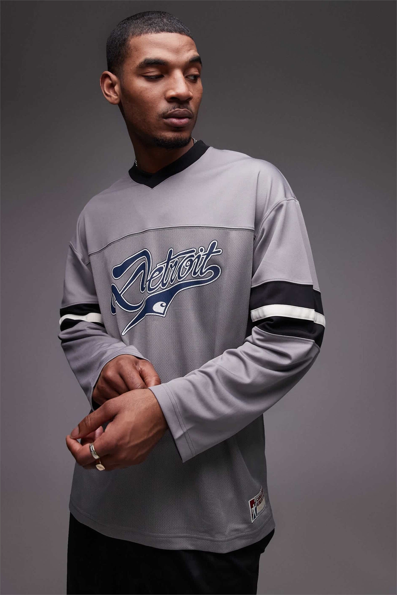 Детройтская спортивная майка с длинным рукавом из сетчатого материала
