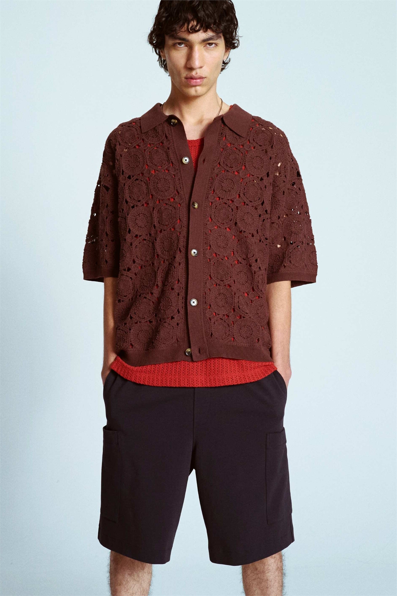 Рубашка из вязаного крючком полотна с расслабленным цветочным принтом
