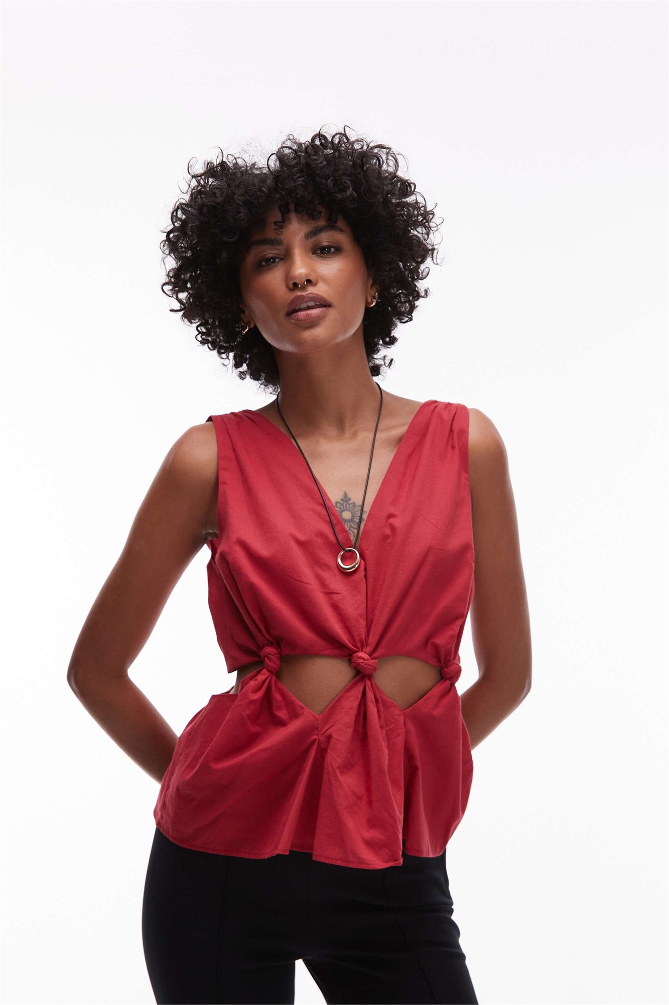 Топ без рукавов из хлопкового вуаля с завязкой на талии