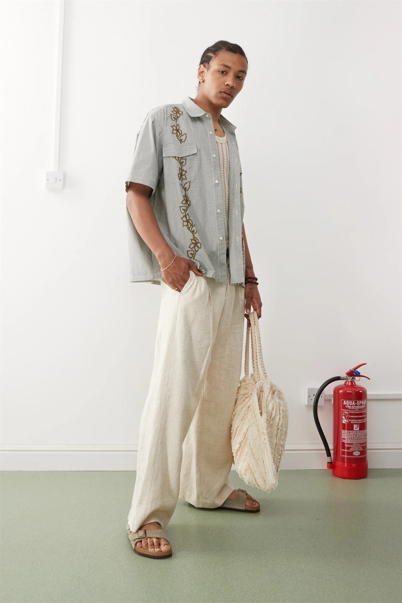 Рубашка прямого кроя с короткими рукавами и вышивкой в виде цветочной лозы