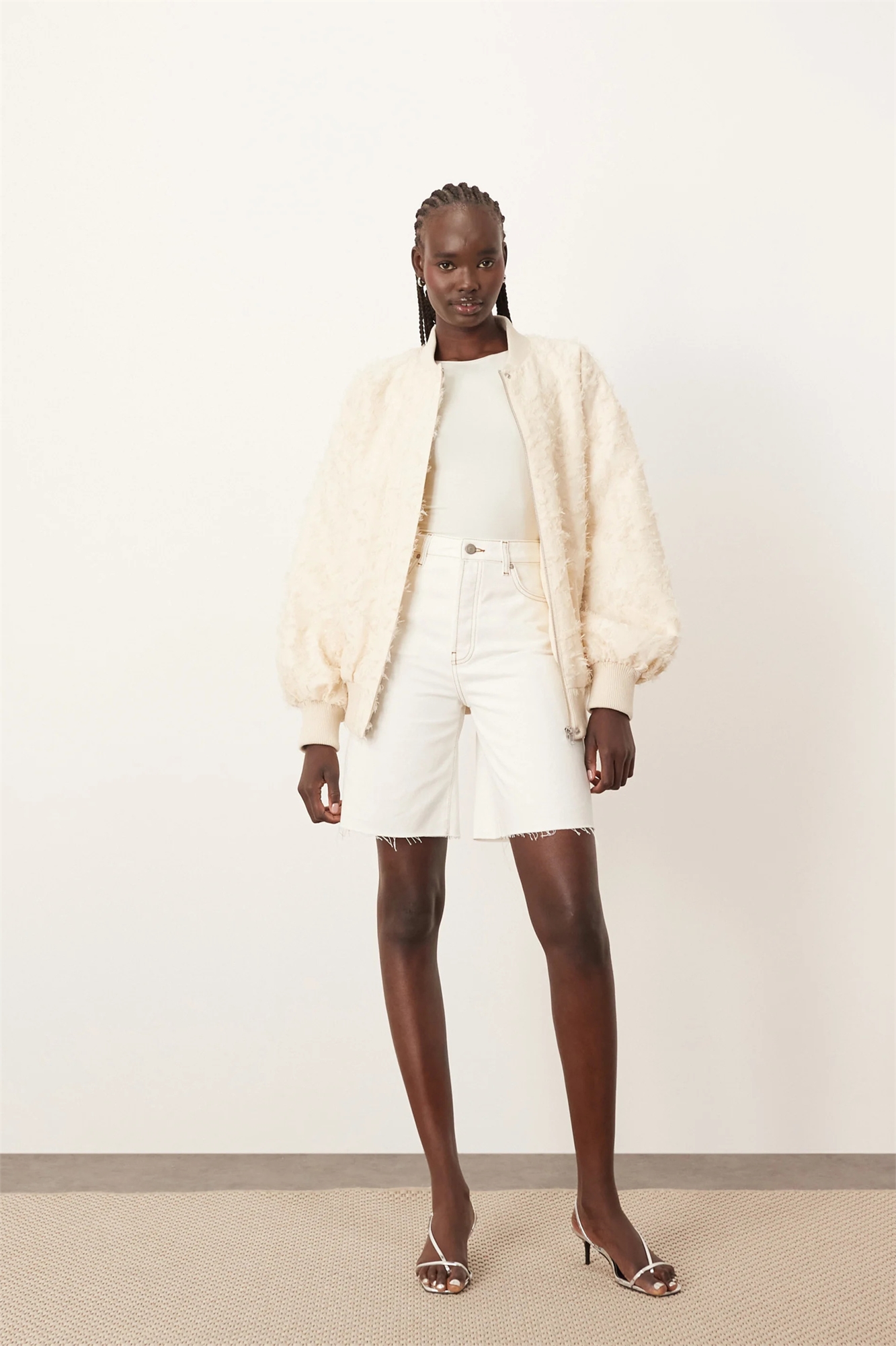 Жесткий, нерастяжимый деним: оттенок «экру» Основной материал: 100% хлопок.