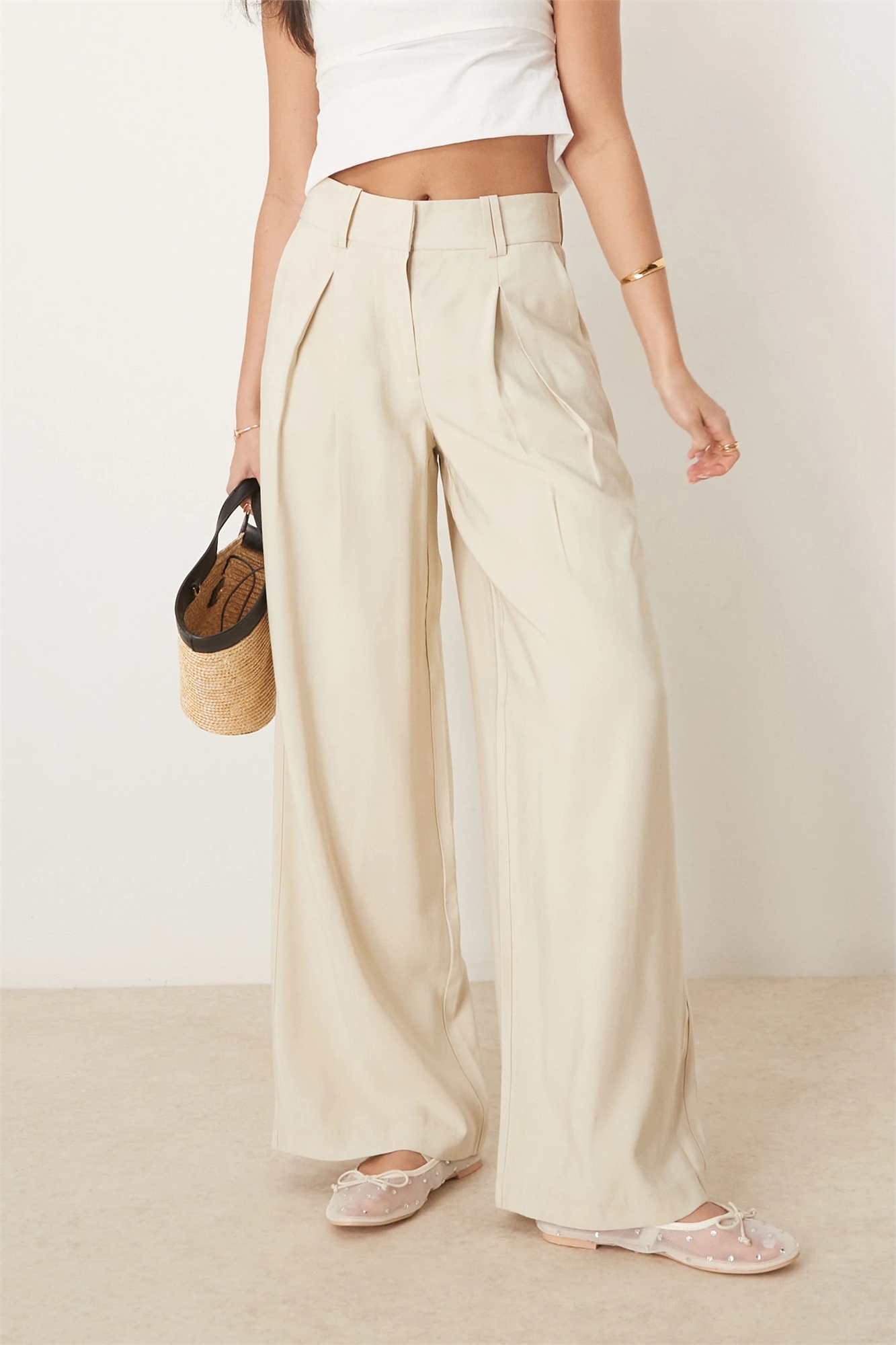 Брюки с высокой талией и складками спереди