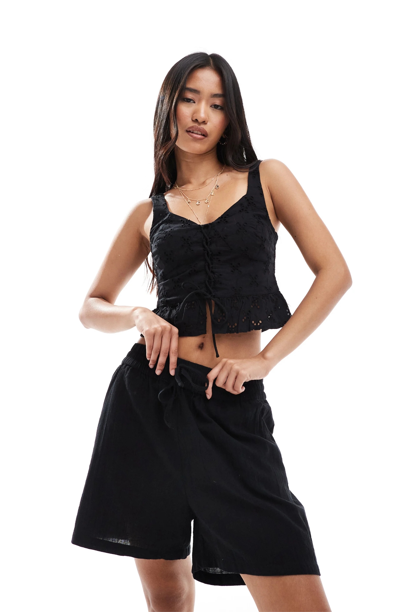 Шорты с завязками спереди и фактурной поверхностью co-ord