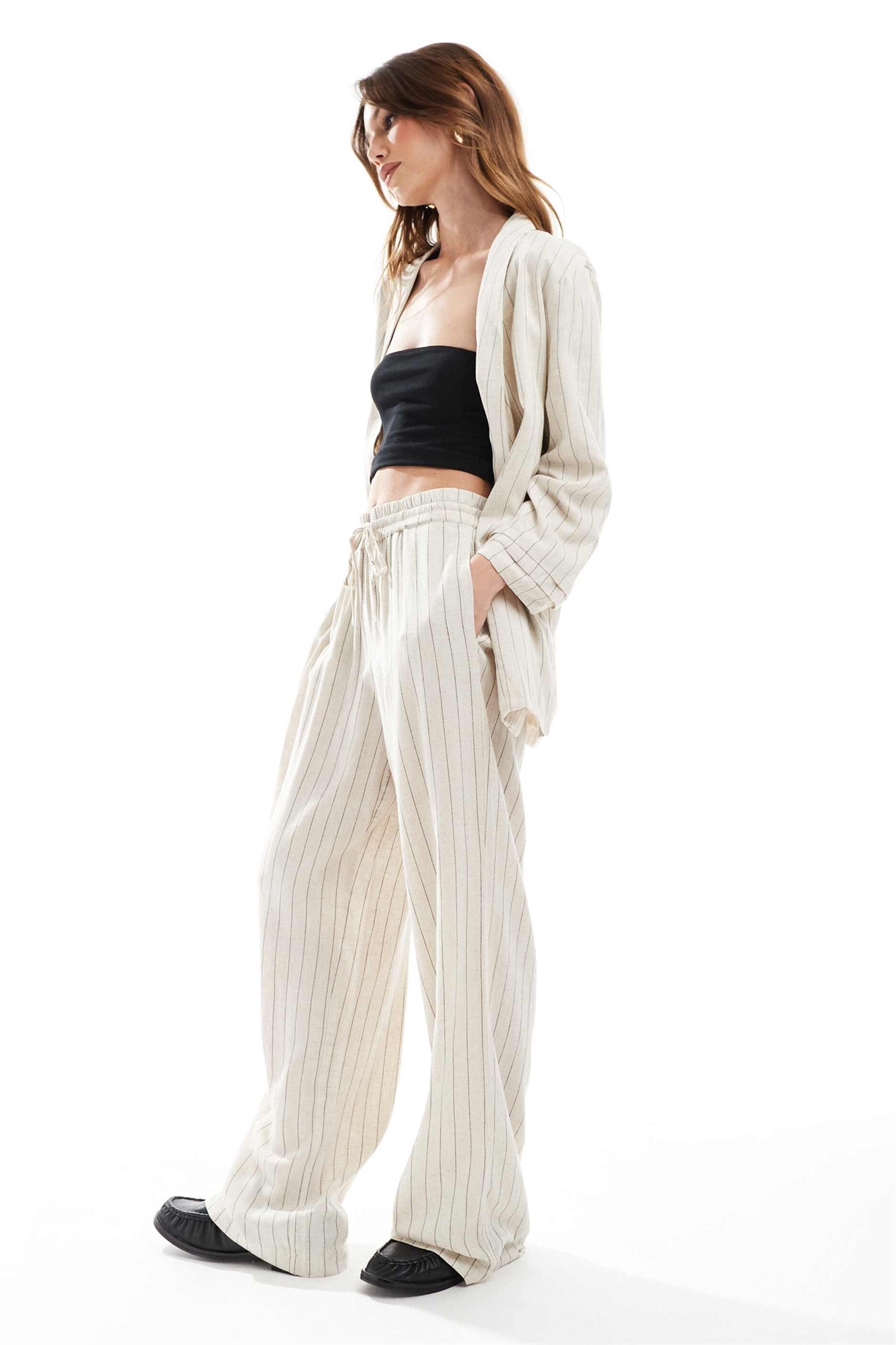 Брюки с широкими брючинами из ткани с эффектом льна в стиле «микс-энд-матч»