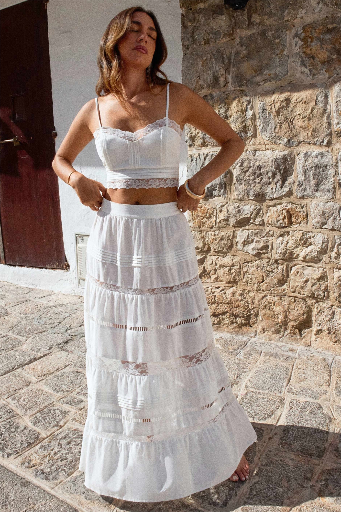 X Luana Barron — пляжная юбка макси из льна с многослойными кружевными вставками co-ord