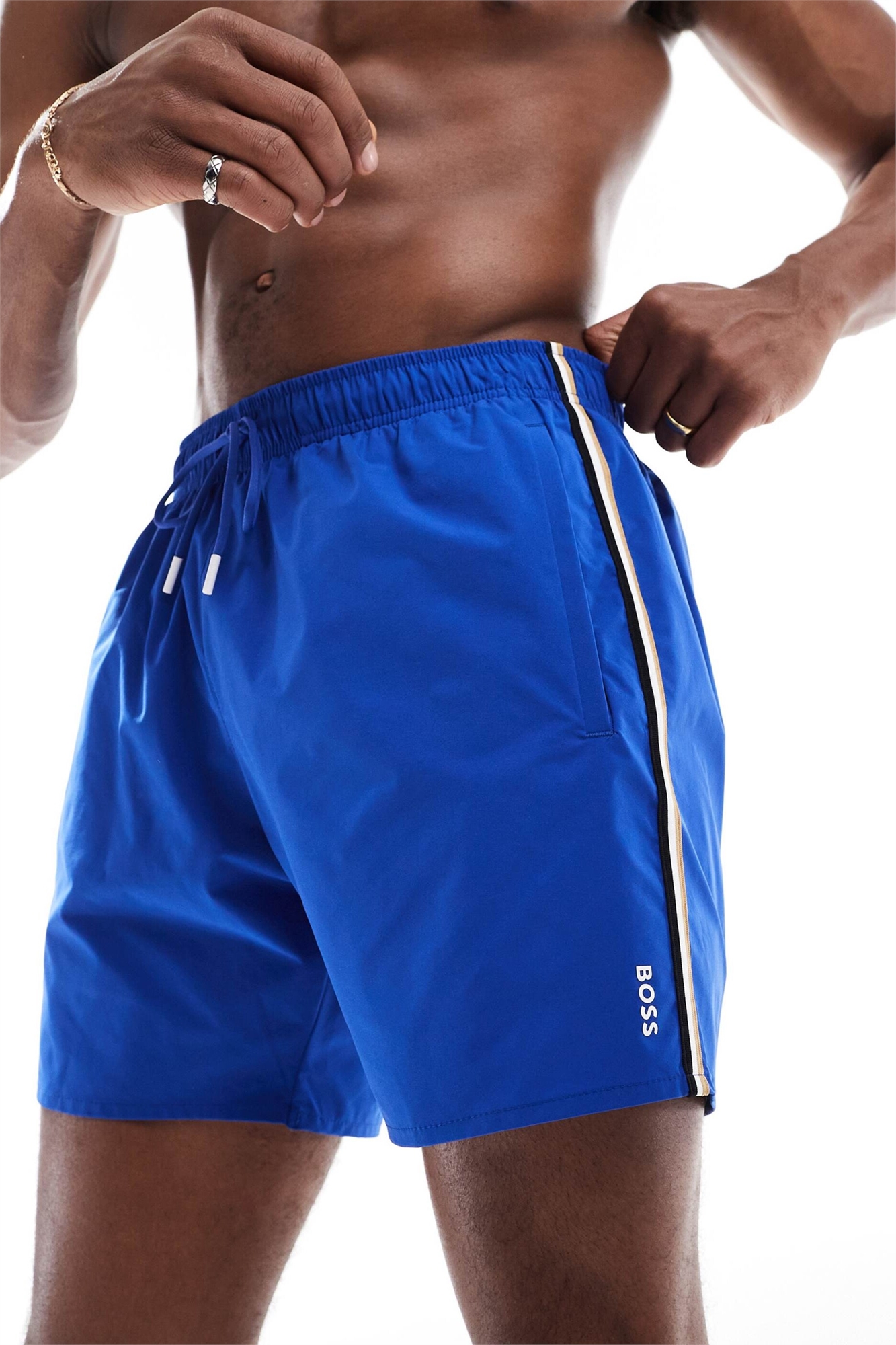 Плавательные шорты Boss Iconic с логотипом, синего цвета, с боковой полосой