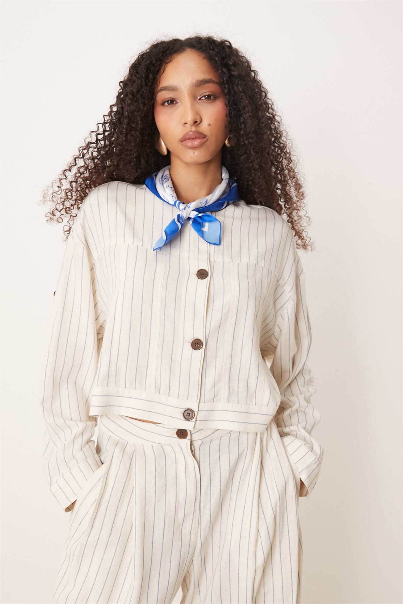 Рубашка с пуговицами и льняной текстурой co-ord