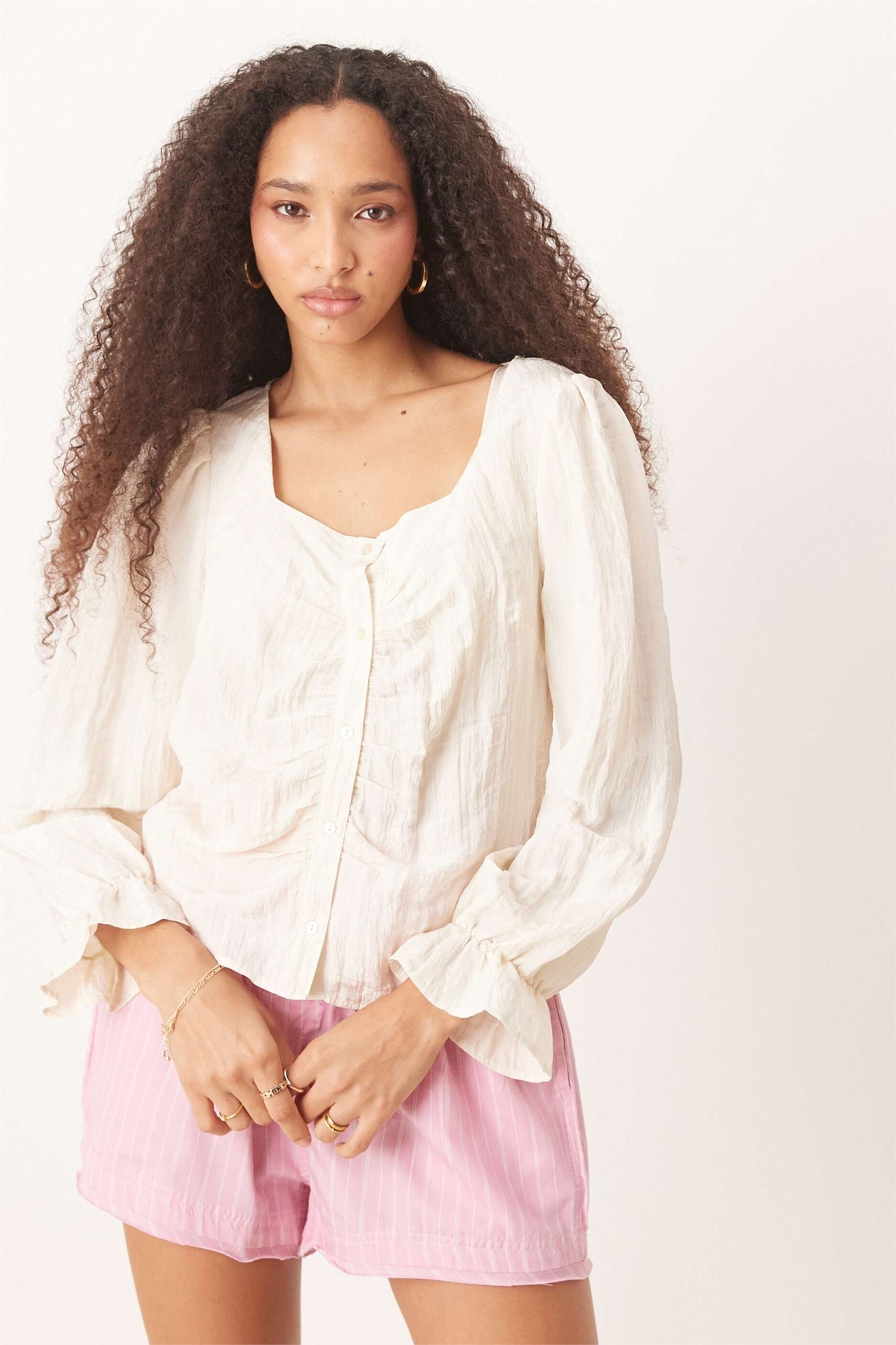 Блуза с рукавами-буфантами из гофрированной ткани