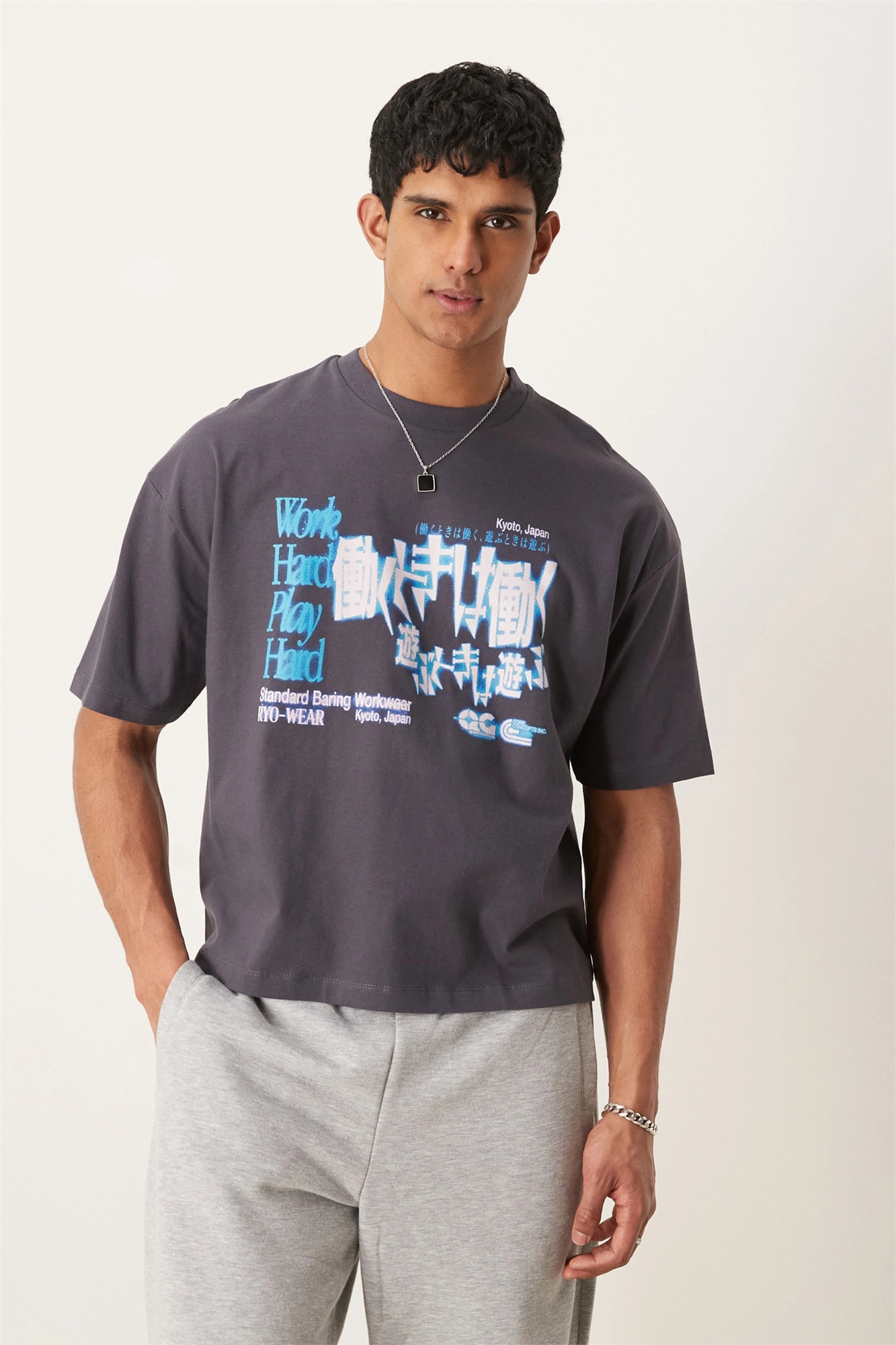 Футболка свободного кроя с принтом на груди