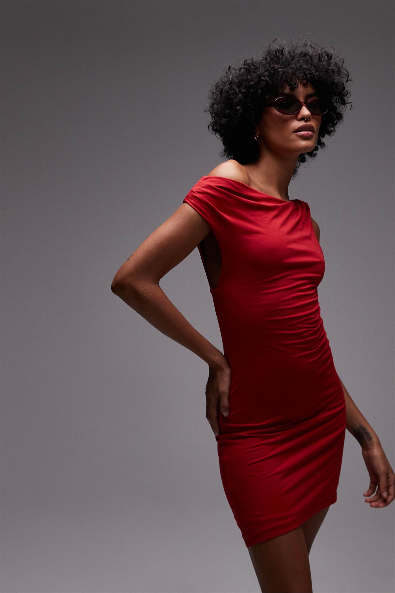 Мини-платье с асимметричным скрученным элементом
