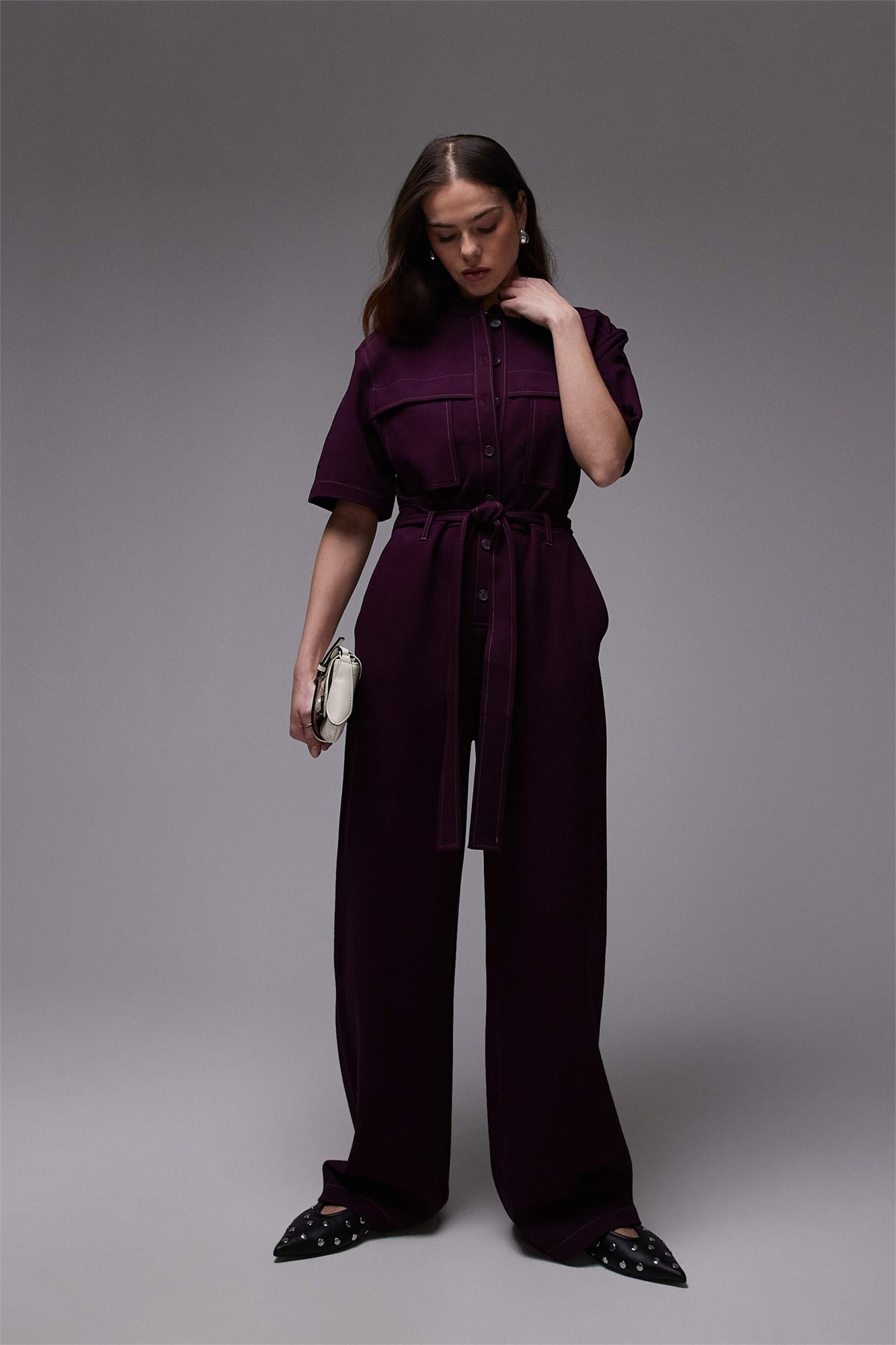 Комбинезон с широкими штанинами из эластичного материала, завязкой на талии и функциональными карманами