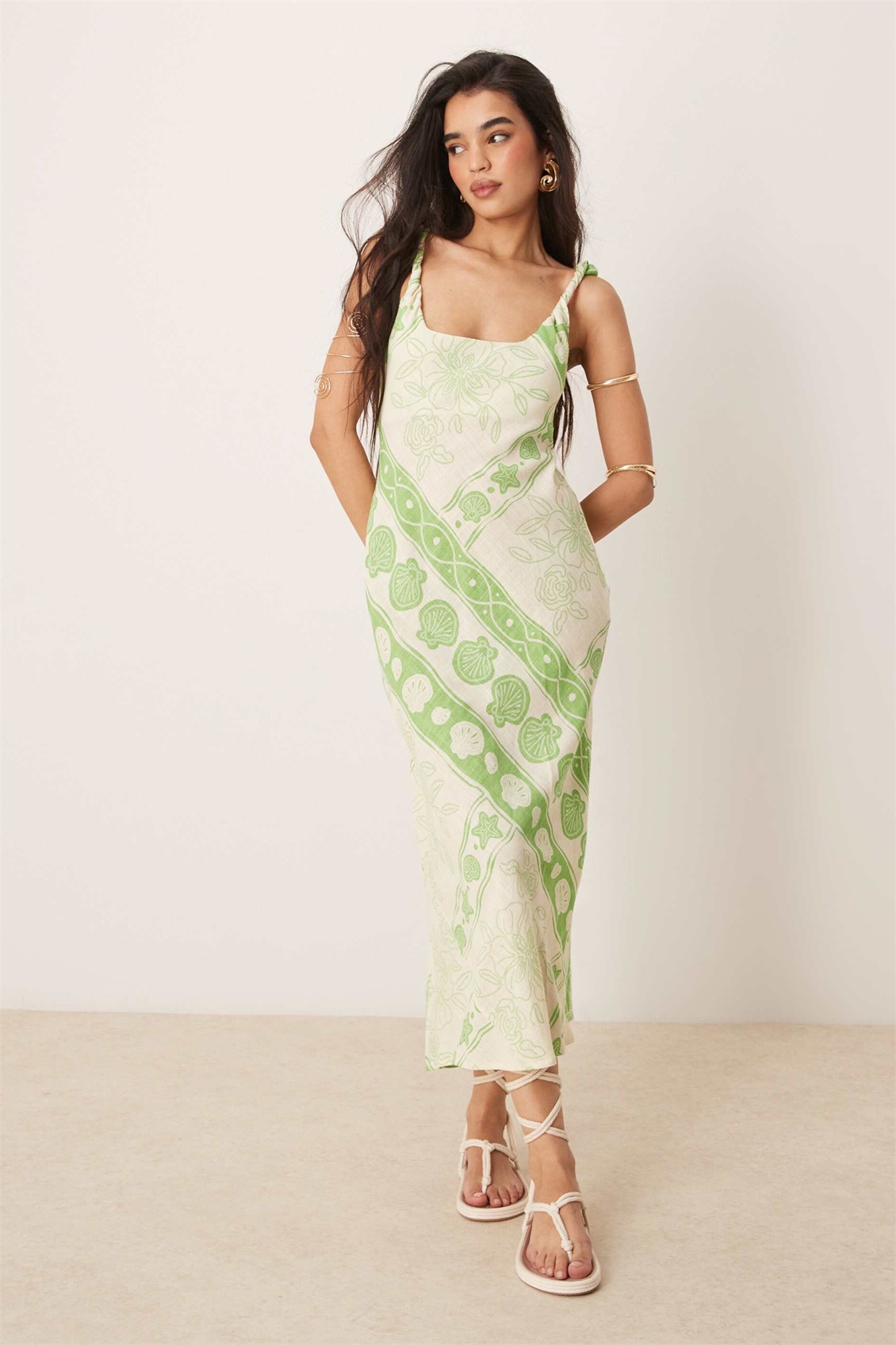 Макси-сарафан из льна с косыми бретелями