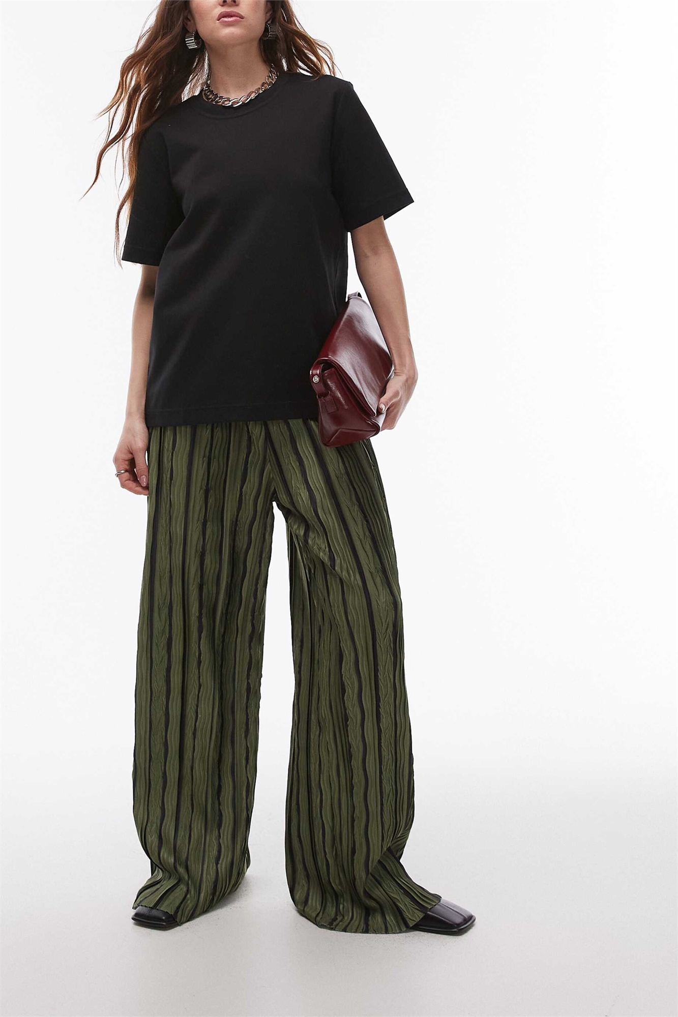 Брюки с широкими брючинами и плиссированными полосками