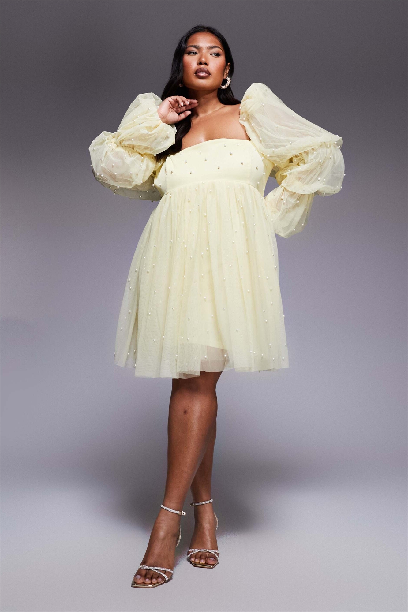 Платье-бабел из тюля с закругленным силуэтом и жемчужными украшениями
