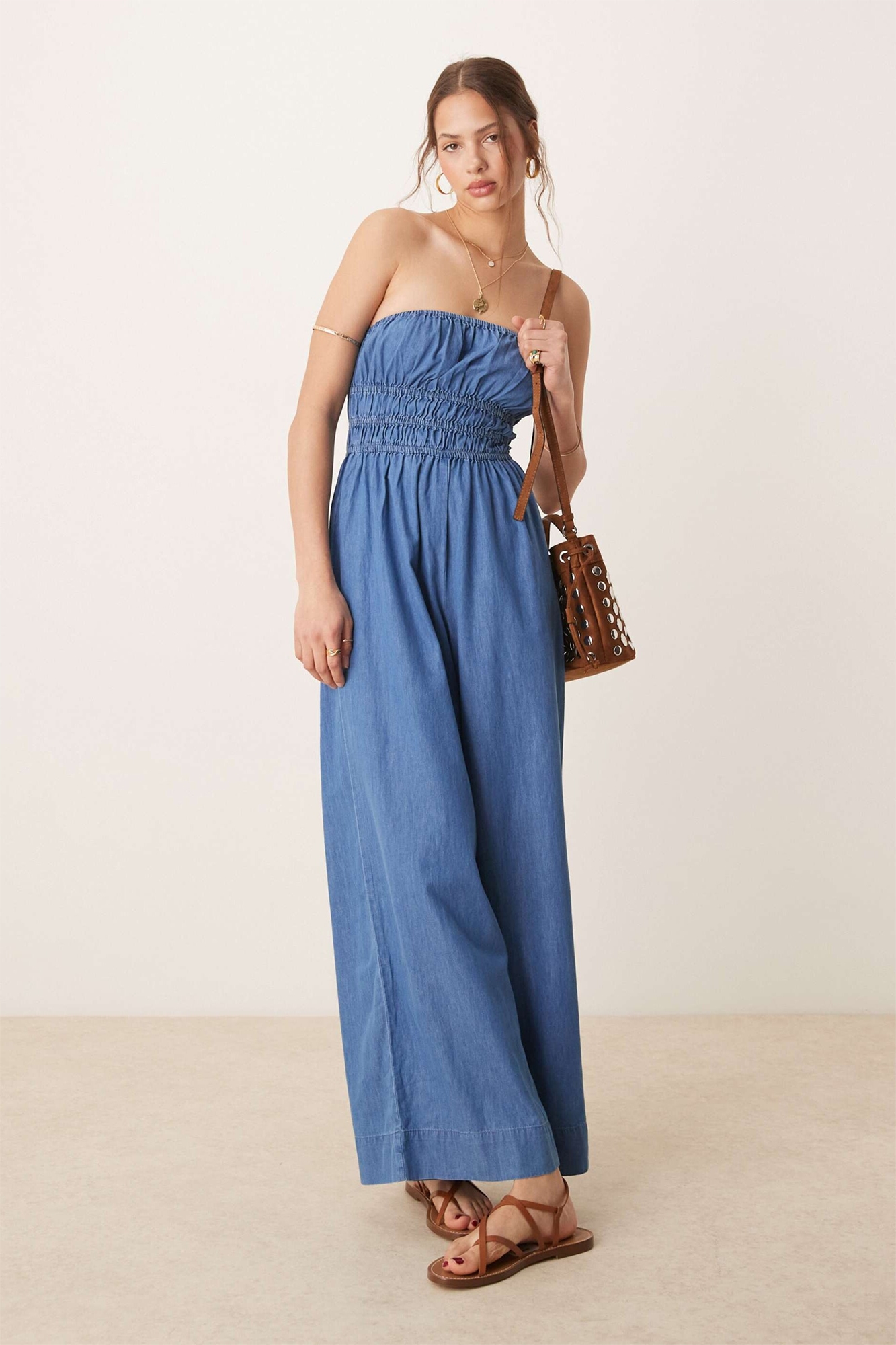 Комбинезон без бретелек с сборками на лифе