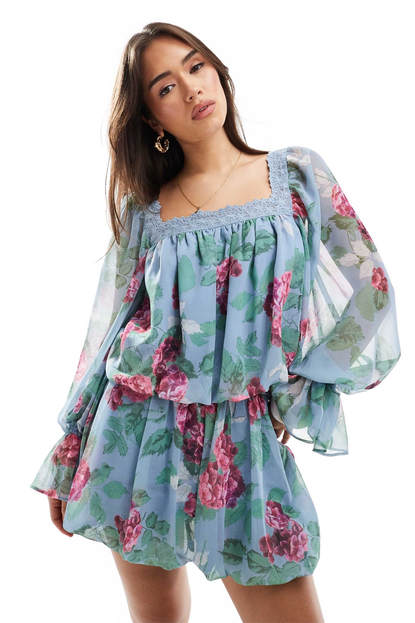 Блузка с квадратным вырезом и кружевной отделкой co-ord