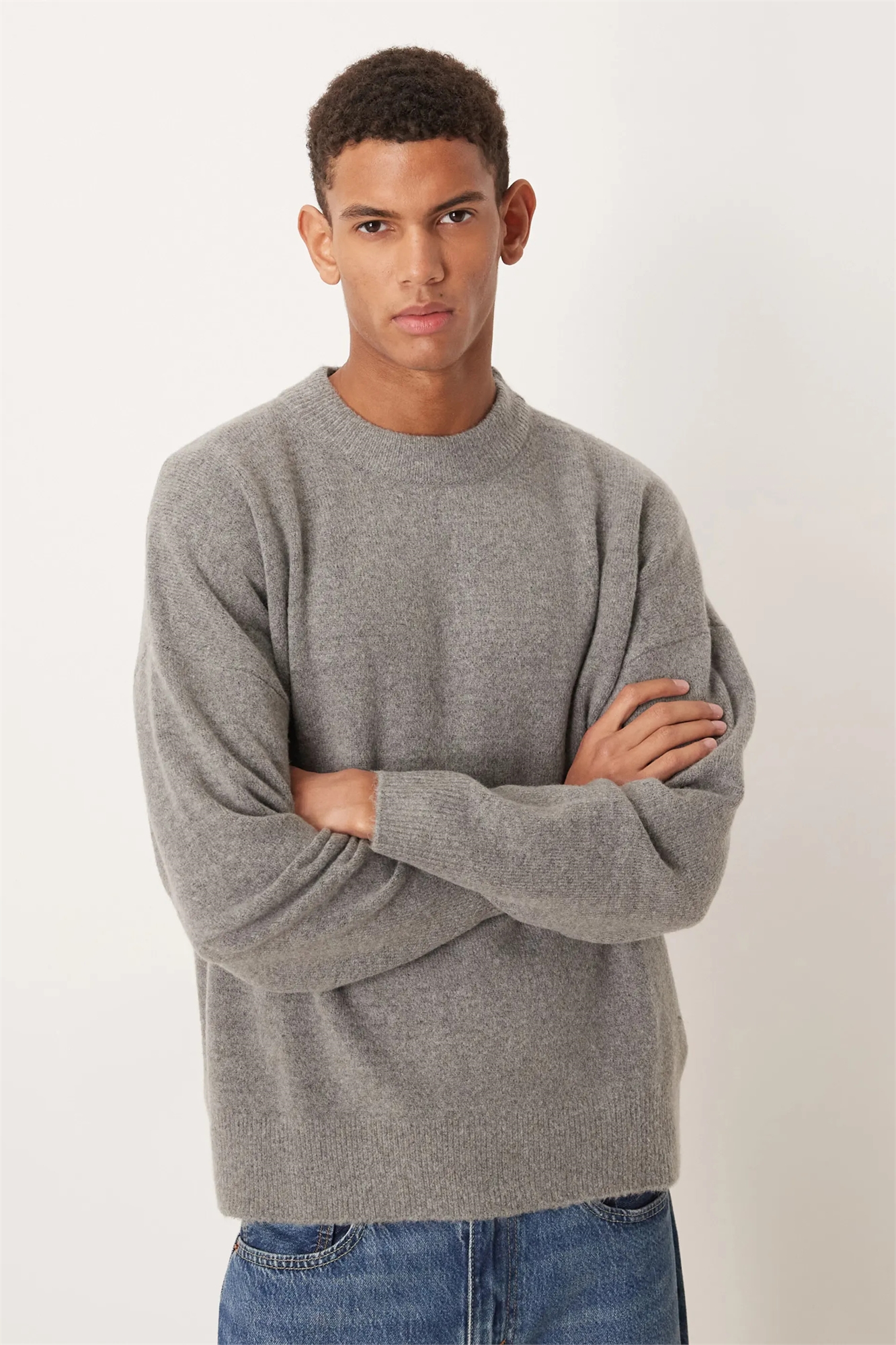 Свитер с круглым вырезом из вязаного материала с эффектом ворсистости, свободного кроя