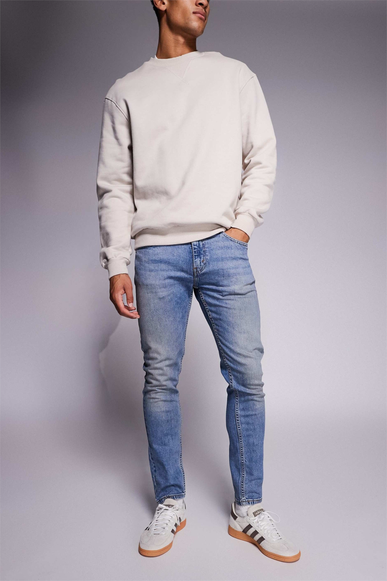 Неэластичный деним: светло-голубой оттенок Основной материал: 70% хлопок, 28% лиоцелл, 2% эластан.