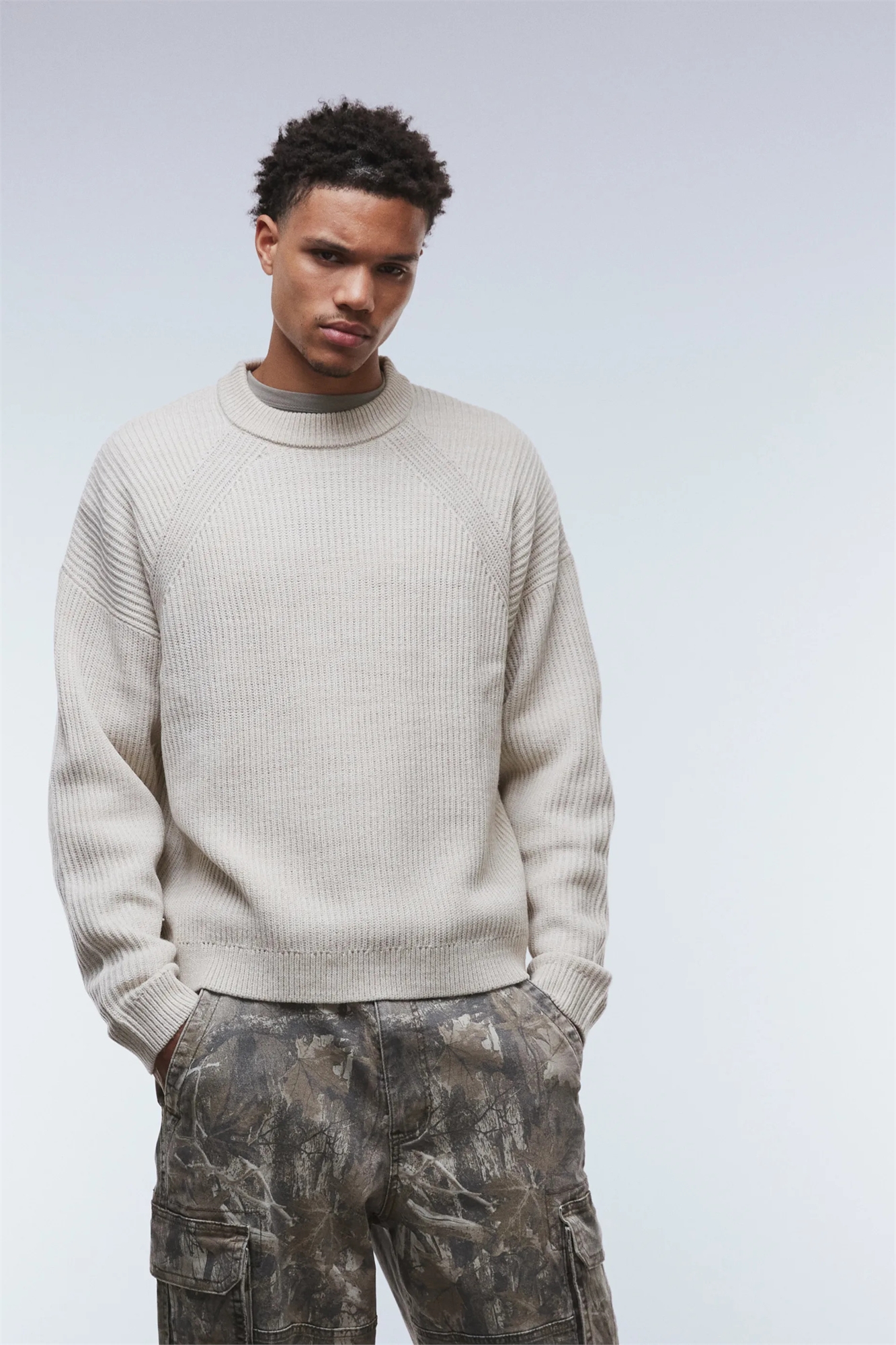 Свитер из трикотажа с узором «рыбацкая коса», свободного прямого кроя