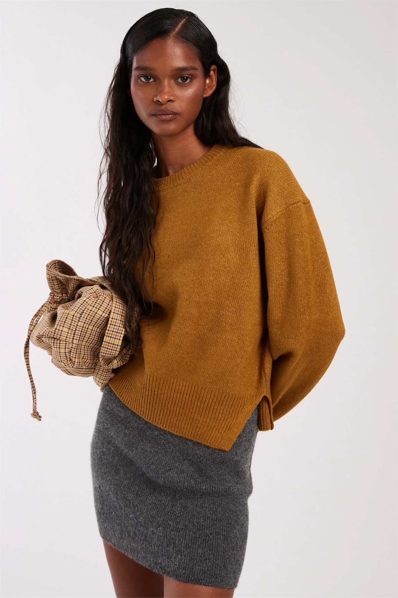 Свободный свитер с круглым вырезом и боковыми разрезами