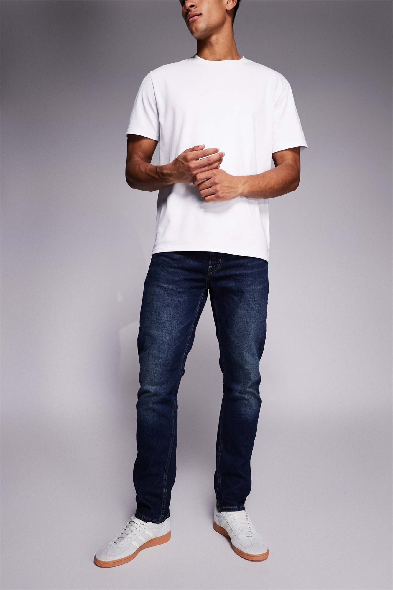 Неэластичный деним: темно-синяя стирка Основной материал: 98% хлопок, 2% эластан.