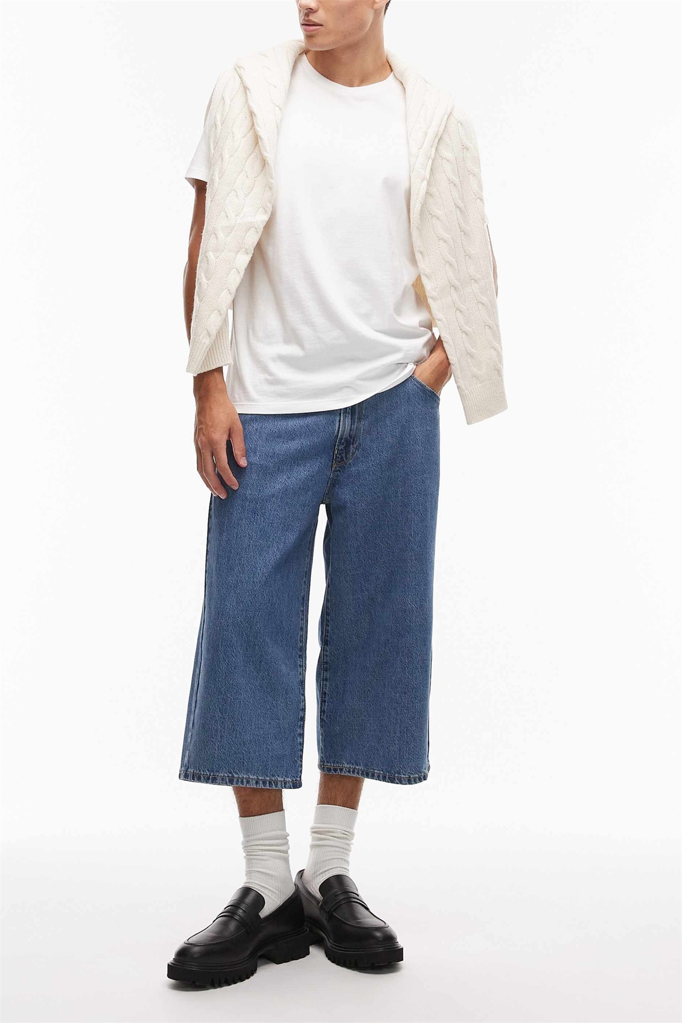 Шорты из джинсовой ткани с широкими брючинами длиной 3/4