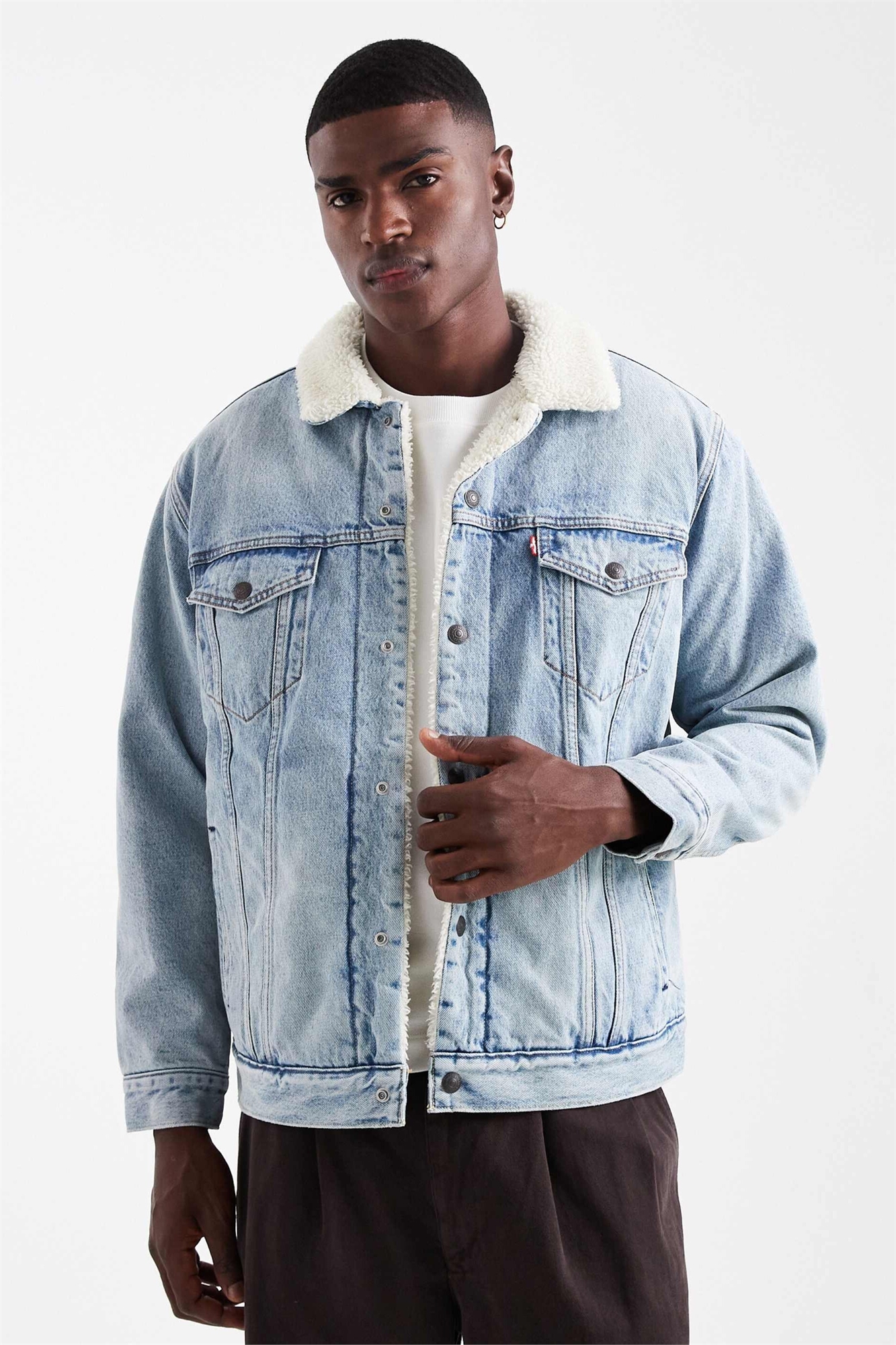 Джинсовая куртка-тракер свободного кроя из шерпа с эффектом винтажной стирки средней интенсивности