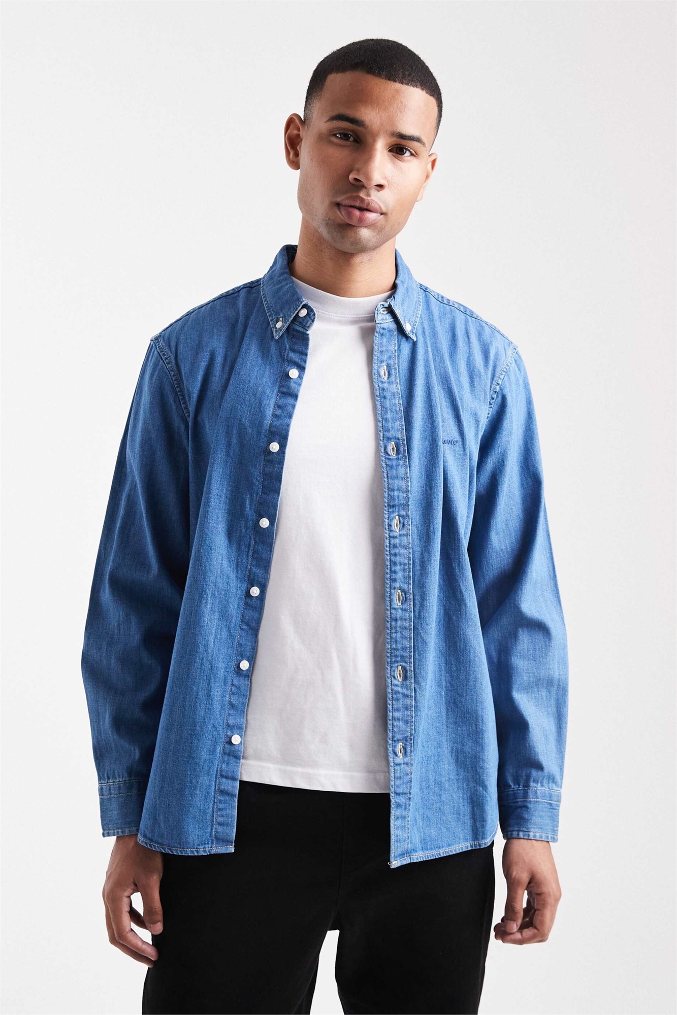 Джинсовая рубашка с аутентичным логотипом в тон, на пуговицах, свободного кроя