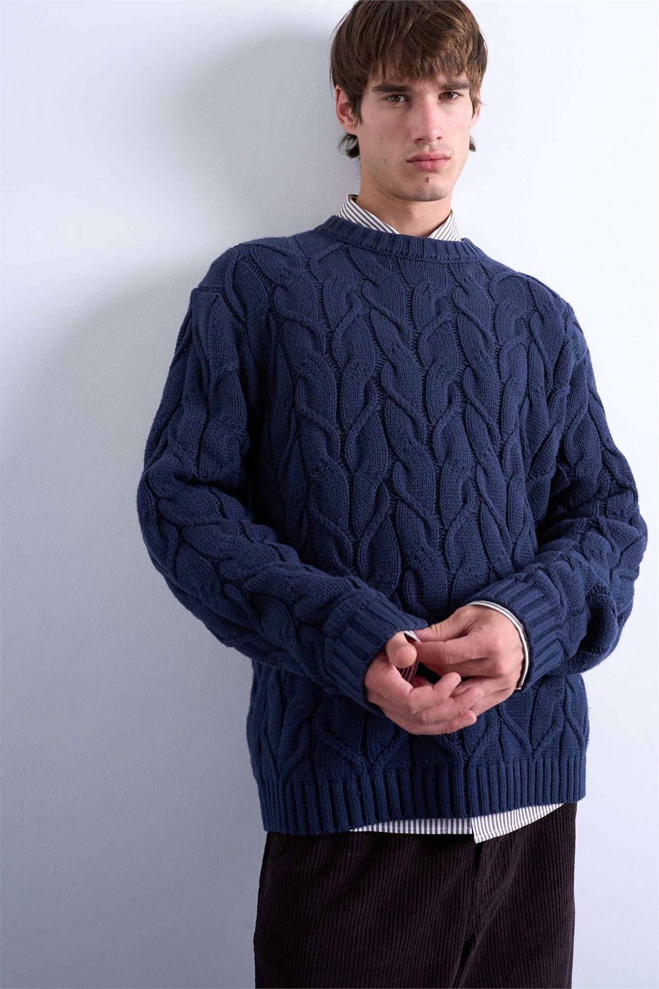 Свитер из плотного трикотажа свободного кроя с узором «коса»