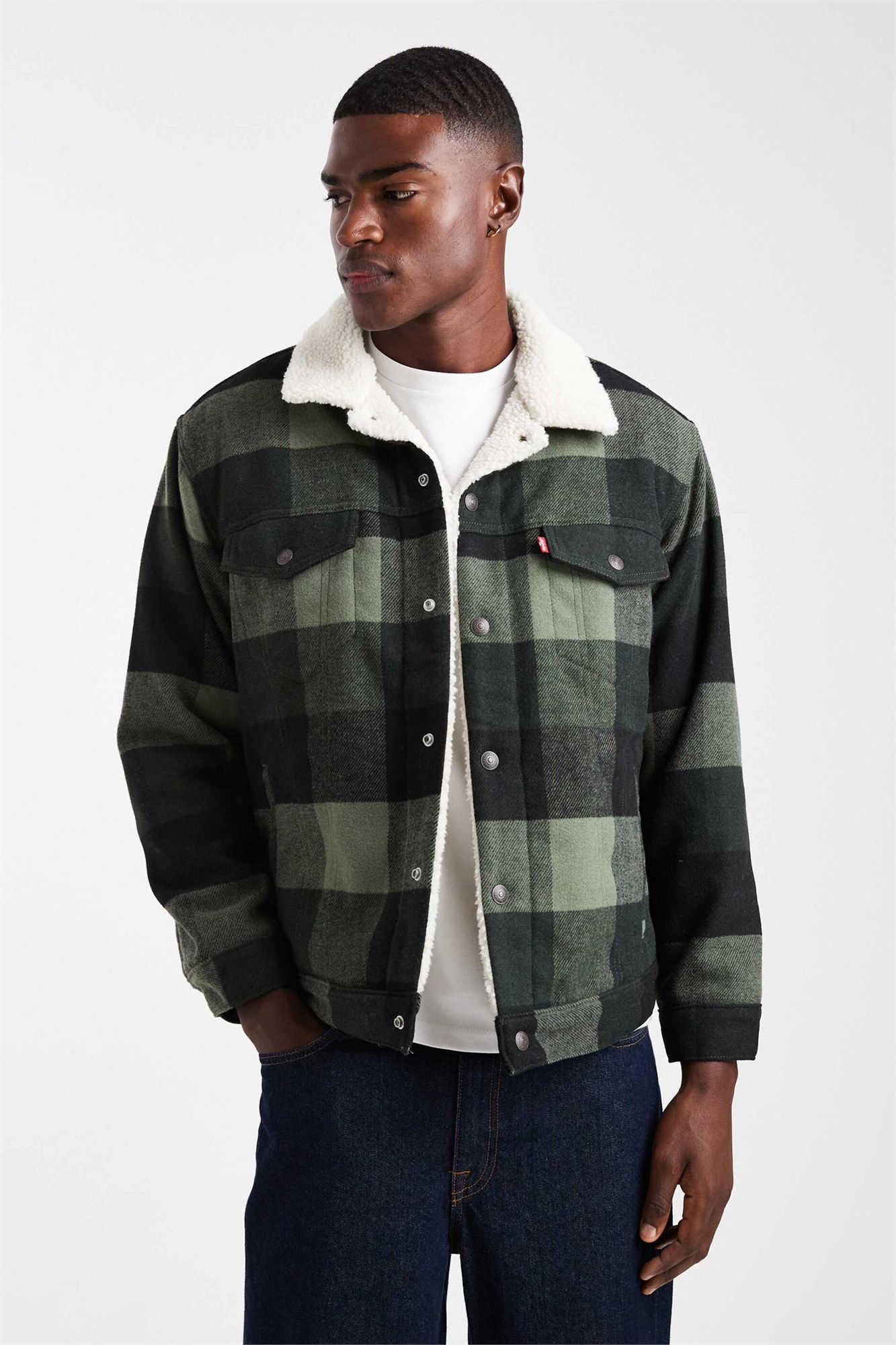 Куртка-тракер из шерпы с расслабленным кроем и клетчатым узором, цвет угольно-серый