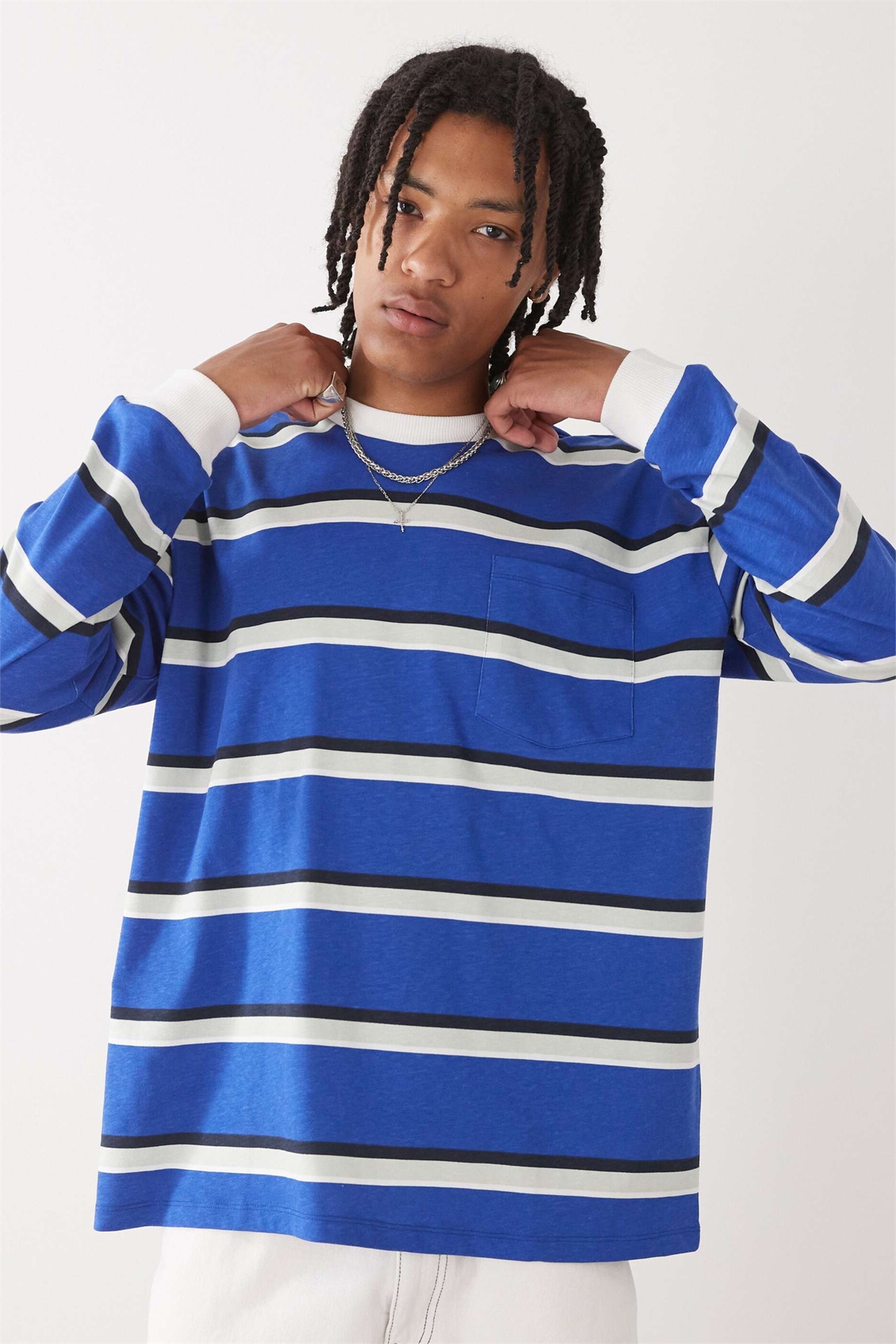 Футболка с длинными рукавами в полоску и карманом