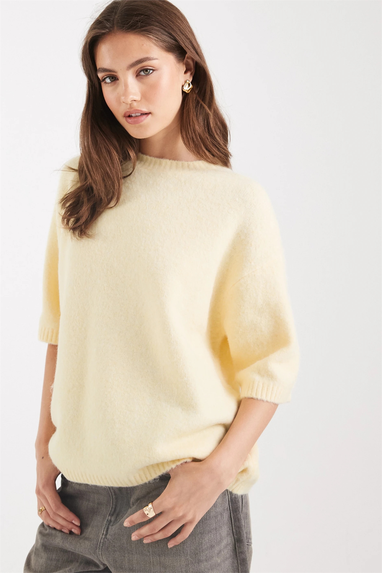 Вязаный свитер с круглым вырезом и пушистой текстурой